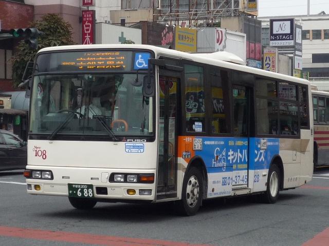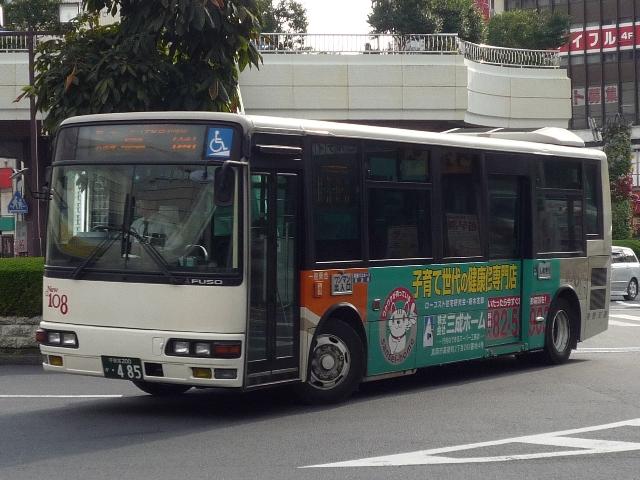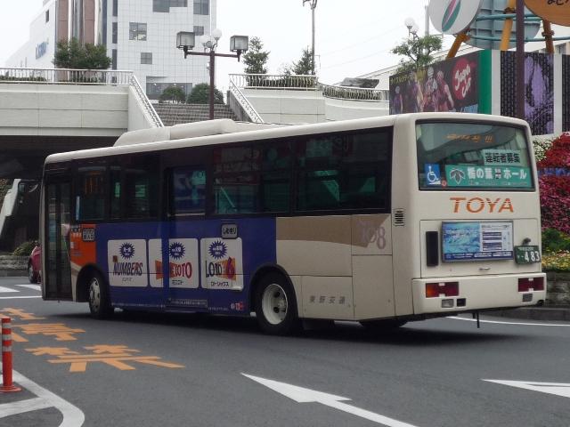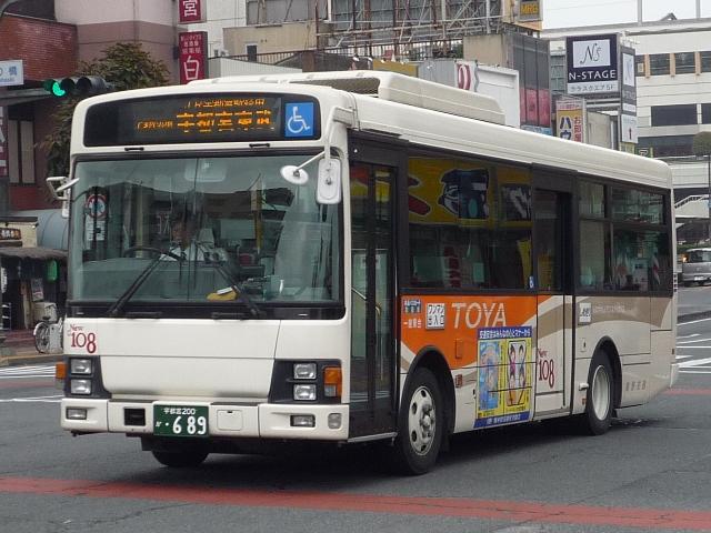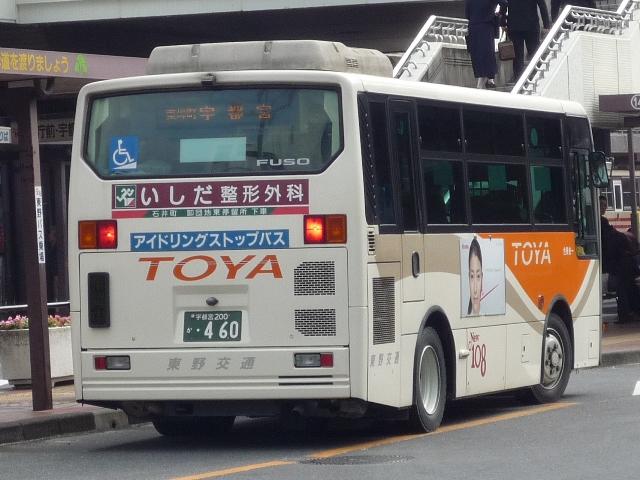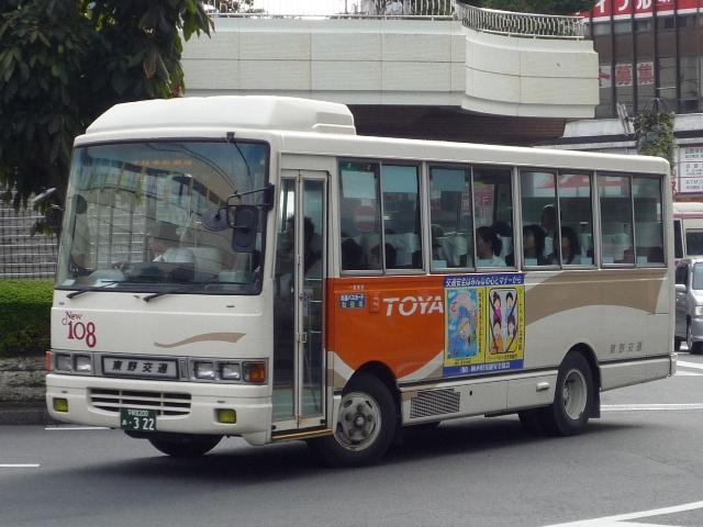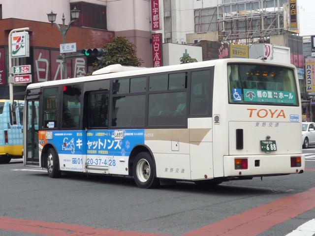 宇都宮で見たバスシリーズ、東野交通編は今回で打ち止め。東武グループ貸切カラーの グラデーション部を簡素化した、今のところ東野交通標準カラーとなっているバス車両画像 よせ集めです。 なお、ノンステップバスの型式は『年鑑バスラマ』各号掲載の「ノンステップバス事業者別 累計」、その他は『僕たちの大好きな鉄バスたち』(2009),洋泉社を参照し、追記しており ます(2009年6月追記)。 宇都宮200か460.KK-MJ23HE(03年車)。 このあたりの車両からグラデーション部がオレンジ1色塗りに簡素化された模様。 7mのMJワンステは宇都宮市内の循環路線がメインの様子。複数台在籍しています。 宇都宮200か483.KK-MK23HH(04年車)。 新塗装のMKワンステ。新車は中型車のみのようで、ダウンサイジングが続きます。 宇都宮200か485.KK-MJ27HL(04年車)。 こちらはMJノンステ。ブラックサッシとなったことで、印象がだいぶ変わります。 宇都宮200か688.PA-MK27FH(06年車)。 国交省仕様ノンステのMK。見ることは出来ませんでしたが、この他9mHRも導入して いるようです。 宇都宮200か689.PA-KR234J1(06年車)。 並行してワンステ車も導入。見た目ではエルガミオなんだかレインボーⅡなんだか判別不 能。参照資料でKRと判明。フロントにロゴ等がほしいもの←マニアの戯言 宇都宮230あ1081.PA-MK27FH(07年車)。 国交省05年仕様ノンステは何故か希望ナンバー。重複を避けたのか?それとも・・・。 小生の語呂あわせでは「とうやいちばん」という意と解釈。 現在のふそうメインの流れからすると、そろそろ東野にも西工ARが登場するのでしょうか。 ※2009年に登場した模様。 宇都宮200あ322.U-RB1WEAA(95年車)。 最後にマイクロバスの路線車画像、トップドアのRB。塗装からグループ間移籍ではないよう ですので、自家用からの転用でしょうか。 PR