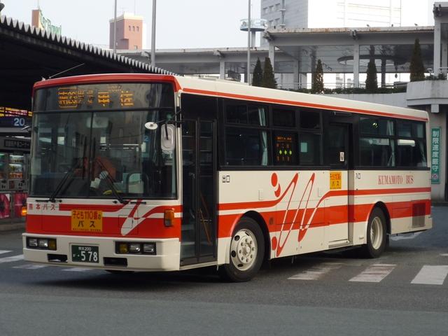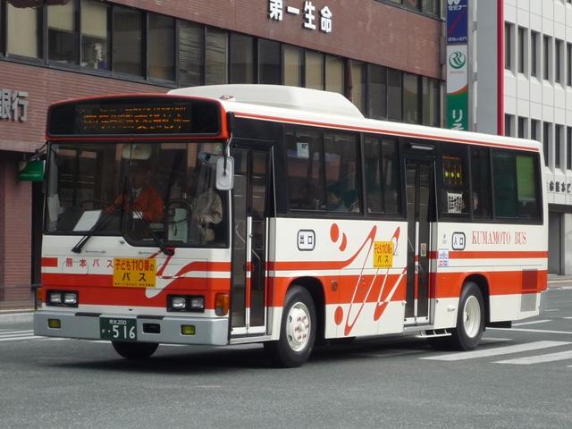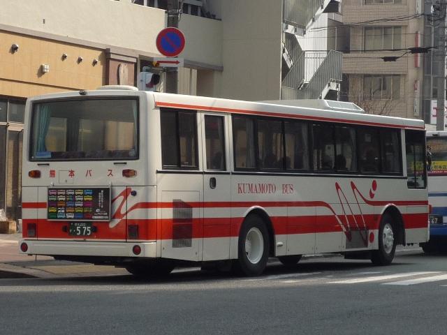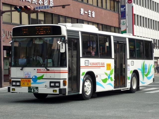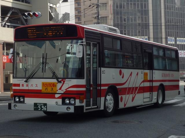 熊本で見たバスシリーズ。 今回も引き続き、熊本バスの移籍車画像のよせ集めになります。熊本バスでは2004年 頃から熊本市交通局路線移管に向けて、京急のワンステップ車を中心に移籍車を積極的 に導入しました。この移籍車がマニア心をくすぐると言うか、あっと驚く車両だったりとバラ エティに富んでいます。 熊本200か434. 熊本200か439. 熊本といえば「京急からの日野ワンステ移籍車」。順当に熊本バスでも登場。 熊本200か477. 短尺のMK前中扉。路線環境に合わせて短尺というわけではないところがポイント。 熊本200か496. 阪東自動車のHTツーステップ。後部三方向シートもそのままです。 塗装も阪東自動車の水と緑をイメージしたような・・・、DPFが付いていることのアピール とのこと。同カラーは京急からのエアロスターMワンステップも在籍。 熊本200か516. 引き続き中型移籍車も導入。前中扉のレインボー。 熊本200か534. そしてLR。 熊本200か575. 富士ボディの移籍車も在籍。しかも日野富士・・・。図らずも日野車は純正・西工・富士の 3車体が揃うことに。リヤのバス協テールでお分かりの通り阪東自動車からの移籍車。 同型車が熊本バス9X周年カラーとなって活躍中。 熊本200か578. 京急からのワンステップ移籍車シリーズ。富士ボディのLVワンステも登場。 富士ボディはこの他、京王電鉄バスグループからJP移籍車も在籍。見たかったのですが、 残念ながらタイミング合わず。 熊本200か596. そして京急からの日野ワンステ。京急の廃車毎に熊本各社で活躍している感。 PR