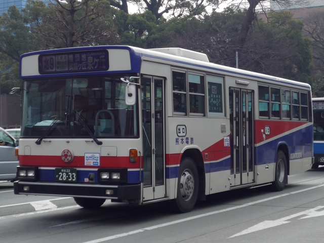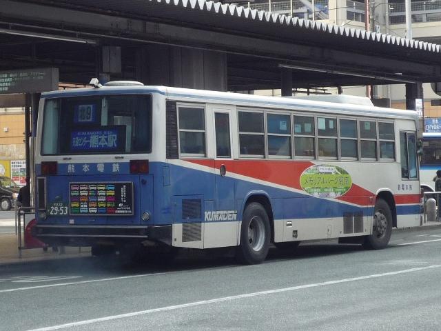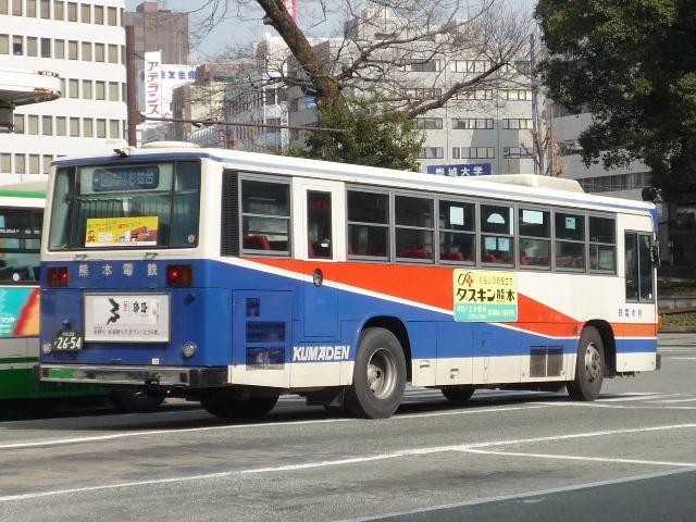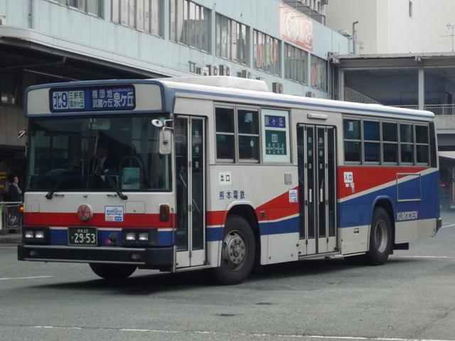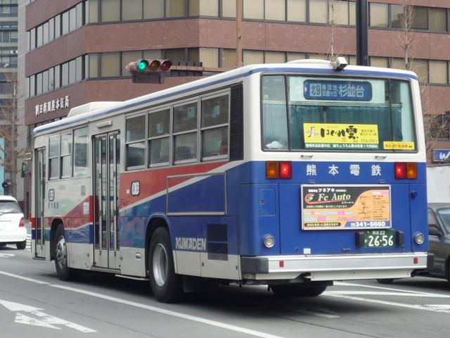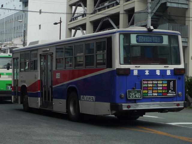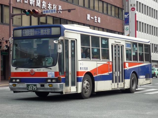熊本で見たバスシリーズ。ここ最近は忙しくなかなか更新が出来ない状況が続いていま す。今後もこの状況が続き、出かけることも出来なさそうなので熊本ネタを半年くらいか けてやっていく予定です。アクセス数もジリ貧なのでこんなもんでしょう。今回は熊本電 気鉄道のバスになります。 熊本電気鉄道はその名の通り、現在も鉄道事業を行っており、LRT化出来なければ廃止 とブチ挙げたことで一時期話題になりました。路線バスはかつて鉄道が運行していた御代 志から先の菊池温泉を中心に熊本市北部への路線を中心に運行しています。 近年では熊本市交通局からの路線移管もあり、以前にも増して移籍車の導入を行ってい ます。今回は熊本電気鉄道のバスでもU規制車あたりまでの自社発注車両を並べていき ます。 熊22か1854. 熊本電気鉄道のバスで今回見かけた中で最古参、熊22ナンバー。 西工ボディのいすゞ。この頃の熊本電気鉄道のバスは中扉4枚折戸が標準仕様。 熊本22か2275. 熊本22か2406. もちろんキュービックも在籍。鍍金バンパーが時代を感じさせます。 熊本22か2540. リヤからふそうと分かる西工ボディ。WBと扉位置の関係なのか、扉後の側面窓数が あまり見かけない仕様。宇野自動車みたい。 熊本22か2543. ふそう以外はありふれた窓数。この頃から側面行先表示が中扉前となります。 熊本22か2654. 側面行先表示が窓全面に拡大。 熊本22か2656. 西工ボディのいすゞ。富士ボディも導入していたはずなんですが、見かけたのは圧倒的に 西工ボディでした。どうもタイミングがあわなかったようで・・・。 熊本22か2833. 側面出入口表示が行灯だったのもこのあたりまででしょうか。 熊本22か2953. U規制車末期に行先表示の仕様が大きく変わりました。前面は系統&経由幕と行先幕に 分割。お隣、長崎バスのような感じとなりました。側面も行先と経由を独立させたあまり他 所では見かけない表記に変更。後面は行先幕が窓下部、系統&経由幕は窓仕様と機器 の関係か無理矢理な場所に配置。アンバランスな印象。 熊本22か2954. 久々に見かけた純正車体。キュービックもご覧の通りな2分割行先表示。 PR