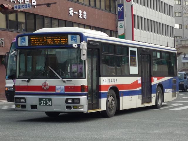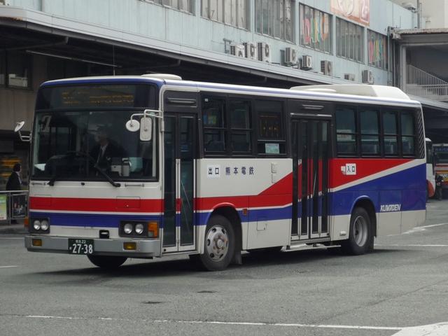 熊本で見たバス画像よせ集め。 今回は熊本電気鉄道編その2ということで、「熊本22か」ナンバーの続きと前回並べ損ね た移籍車の画像を並べていきます。とはいえ今回もやっつけ感のある更新となっているこ とをあらかじめお断りしておきます。 熊本22か3127. 上部が開く逆T字の側面窓仕様のブルーリボン。リヤの巨大行先表示&系統表示が目立 ちます。パッと見、最近話題の横浜市営からの移籍車?と何でも移籍車と考えてしまうの はおかしなマニアの末期症状。 熊本22か3131. 熊本22か3132. 96MCボディとなったいすゞLV。 熊本22か3214. 近年では行先表示のLED改造が行われています。リヤの大型行先表示はLED改造後も 継続しています。 熊本22か3304. 西工ボディのふそうノンステ。前方に配置されたエアコンが目印。 <移籍車> 熊本22か2738. 熊電らしからぬ仕様の中型MKはジェイアール九州バスからの移籍車。山鹿支店撤退に より、路線を引継いた際に車両もあわせて引き継いだ模様。登録番号はそのまま(名義変 更)で活躍しています。 PR