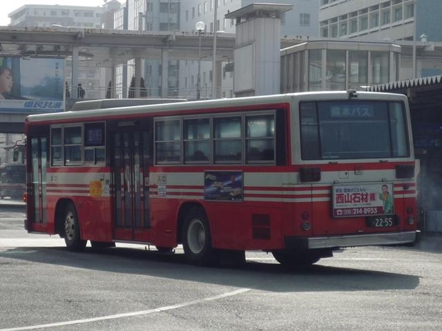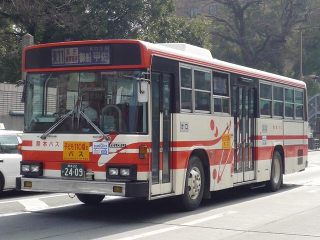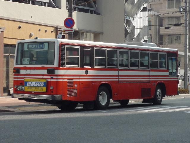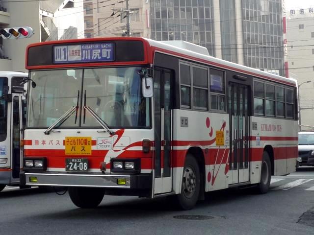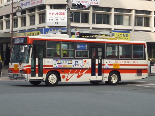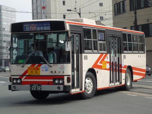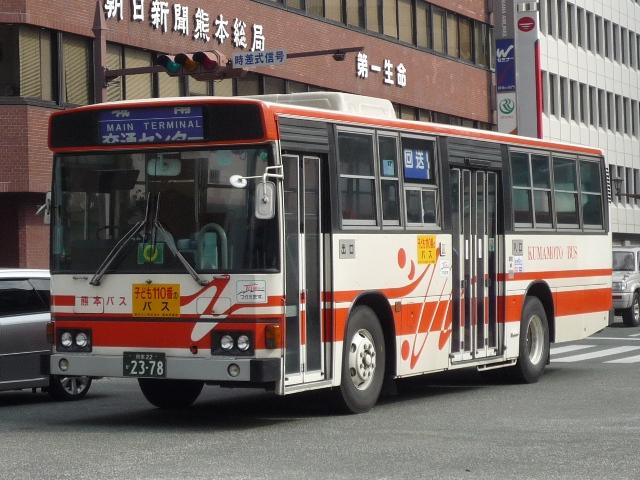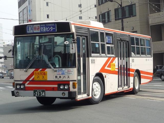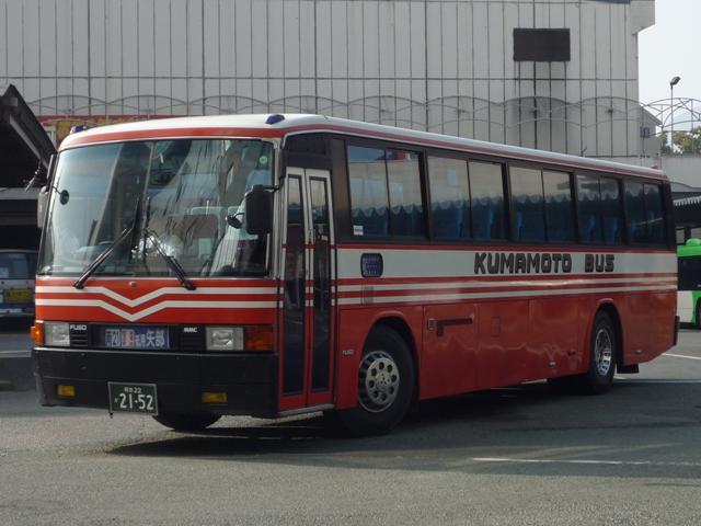 熊本で見たバス画像よせ集め。 今回は熊本バスの「熊本22か」ナンバーのP規制車を並べていきます 熊本22か2113. のっけからリヤからの画像とは。西工ボディの日野車。 熊本22か2134. 純正ボディも在籍。塗装は一時期見られた熊本バスの社紋をモチーフとしたと思われる デザイン。これまでの赤バス塗装に比べると白くなった印象。 熊本22か2152. 貸切兼用車らしいミドルデッカーエアロバス。 この日は通潤橋最寄の矢部まで砥用経由の運用に入っていましたが、この路線は内大臣付 近などおそろしく狭隘な峠道を走ります。小生が乗車した際は京急からのワンステ移籍車で ちょっとお尻が痛くなりましたが、このエアロバスなら快適だったでしょう。 熊本22か2232. ボディ更正の時期の関係か、日野純正車体はこのカラーが多い感。 熊本22か2255. 西工ボディのいすゞLV。時期によってなのかボディ高の関係なのか、窓下白色部の幅が マチマチなところが熊本バス旧塗装の面白いところ。 熊本22か2378. こちらは現行塗装の純正車体。このあたりの車両から車体更正時に現行カラーへ塗装 されている様子。熊本バスの車両はこのあたりの年式の車両も手入れがよく、車内など 他社と比べると格段に状態が良かったです。 熊本22か2390. 中型車も現行塗装。 熊本22か2408. 西工ボディもこの塗装。 熊本22か2409. こちらはオーナメントからも分かるとおりいすゞ。この車両は中扉後に広告掲示枠がある関係 か、アルファベットではなく「熊本バス」の車体表記。 PR
