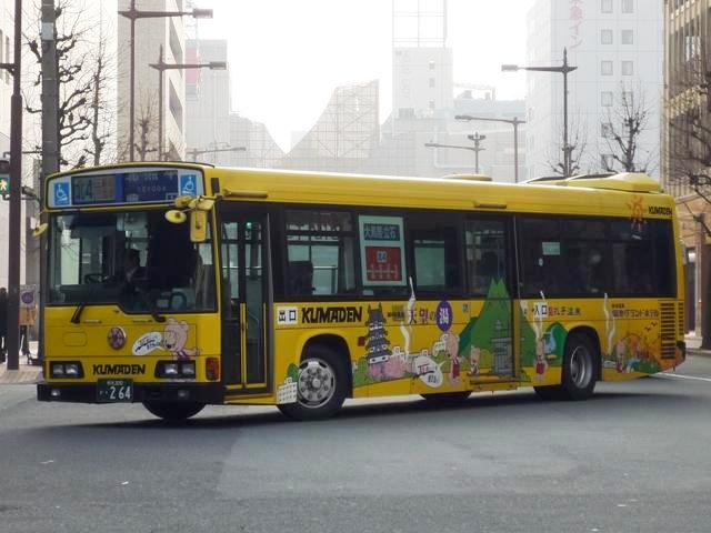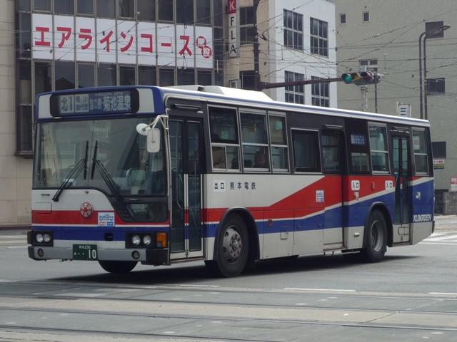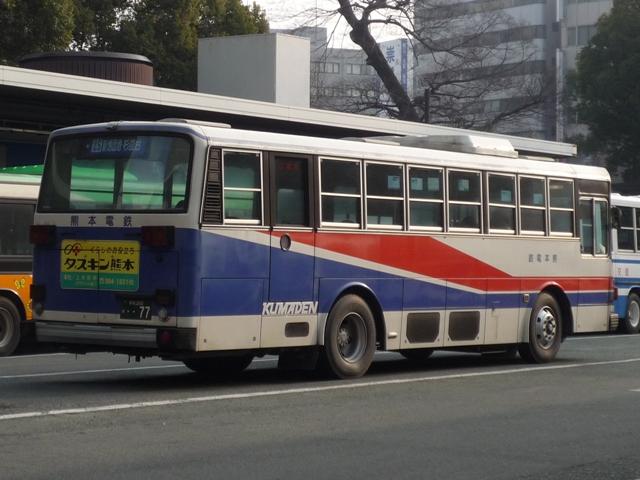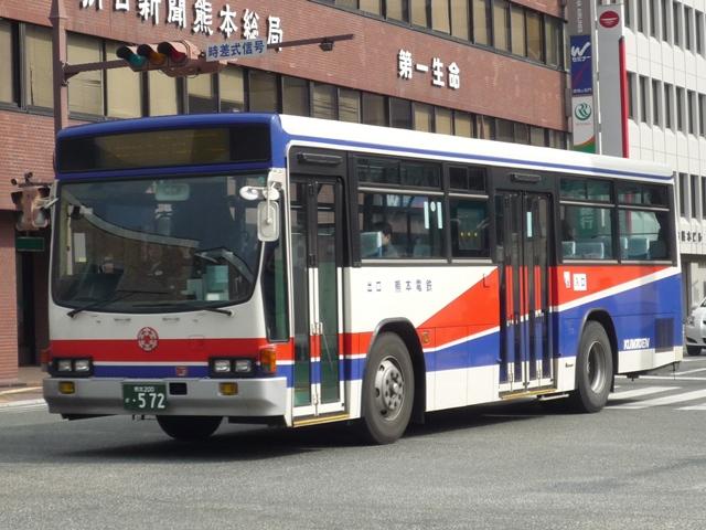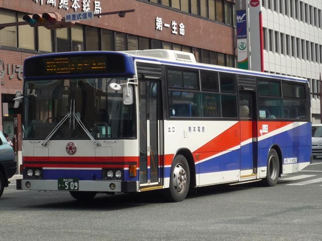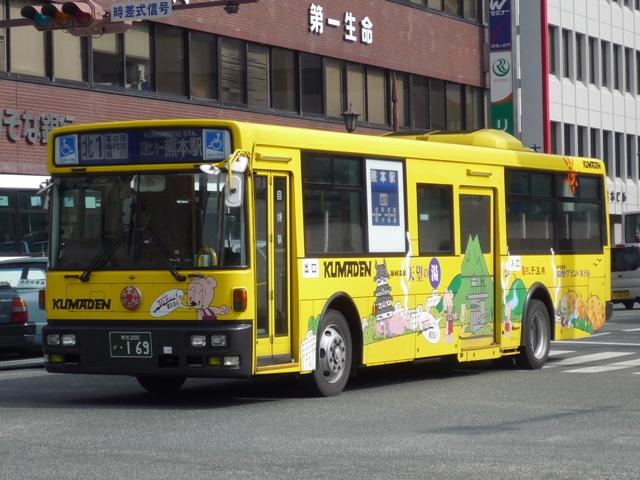 熊本で見たバス画像よせ集め。 今回は熊本電気鉄道編その3として「熊本200か」ナンバーの自社発注車・移籍車の画 像を並べていきます。くまでお馴染みアイミー塗装や5Eなど並べた車種は多いものの、 今回もやっつけ感のある更新となっていることをあらかじめお断りしておきます。 熊本200か10. 熊電移籍車といえば3扉車。移籍車では敬遠される傾向にある3扉車ですが、熊電では 複数事業者から在籍しています。まずはエアロスターM3扉といえば名古屋市からの移 籍車。バンパーや仕様からP規制車でしょうか。 熊本200か77. リヤのテールが角型の5Eは川崎市交通局から。リヤのみしか撮れなかったのが残念。 熊本で見かけた5Eはこの1台だけでした。 熊本200か169. 熊本でいち早く中型幅の10.5m低床車を導入、UDのJPノンステ。 ノンステップバスを中心に見られる黄色に塗装されたバス。「アイミーくん」が目印。 熊本200か264. 続いて日野HR。 熊本200か266. 大型ノンステも導入しています。西工ボディのいすゞ車。 熊本200か440. 3扉移籍車シリーズ。東武からHT3扉。 熊本200か509. 最近の熊本で話題の京急移籍車。HTワンステ。 『僕たちの大好きなあのバスたち』でもお馴染み。 熊本200か520. フォグなど若干モデルチェンジされた頃に入ったRMノンステ。 アイミー塗装はやめたのか、通常塗装となっています。 熊本200か548. 熊本市交通局から路線移管にともない導入された中型移籍車。 前中4枚折戸と仕様的に違和感の少ない気がします。 熊本200か572. 国際興業からキュービックの移籍車。 前中4枚折戸で逆T字窓が導入のポイント?と勘ぐりたくなる1台。 熊本200か652. 最近登録された西工ボディのワンステLVは高槻市からの移籍車。 前後扉仕様がネックとなり、これまで移籍事例の少ない関西以西の事業者ですが、低床化 によって前中扉仕様となった車両は移籍事例が見られることになりそうです。そんなことを 感じさせる1台。 熊本電気鉄道のバス画像よせ集めは今回で終了。一足先に今回で並べつくしました。 PR