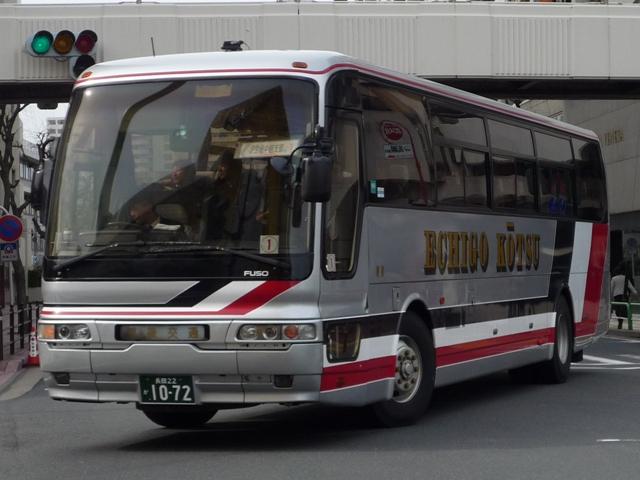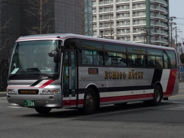 気分転換に北陸地方へ出かけた際の画像を並べるシリーズ。 続いて越後交通。型式・年式は「越後交通所有車両全データ」『バスマガジン13号』 (2005),三推社/講談社を参照しました。 長岡200か59.KL-MS86MS(00年車)。 続いて越後交通の高速車。県内高速車はスタンダードデッカー主体。 長岡200か60.KL-RA552RBN(00年車)。 UDの県内高速車も在籍。希少価値となりつつある富士1Mボディ。 長岡200か196.KL-RU4FSEA(03年車)。 セレガRも活躍。行先表示はこの頃からLEDとなったようです。 長岡200か324.KL-MS86MS(05年車)。 見たところ越後交通の県内高速車だいたいこの手。行先表示がLEDの三菱ふそう車。 長岡22か1072.U-MS826P(93年車)。 こちらはニューエアロバスの貸切車。エアロバスKは見かけず。 PR