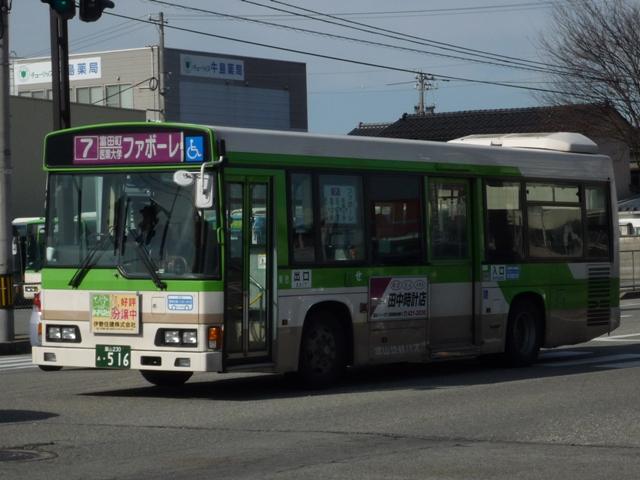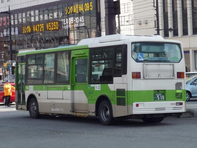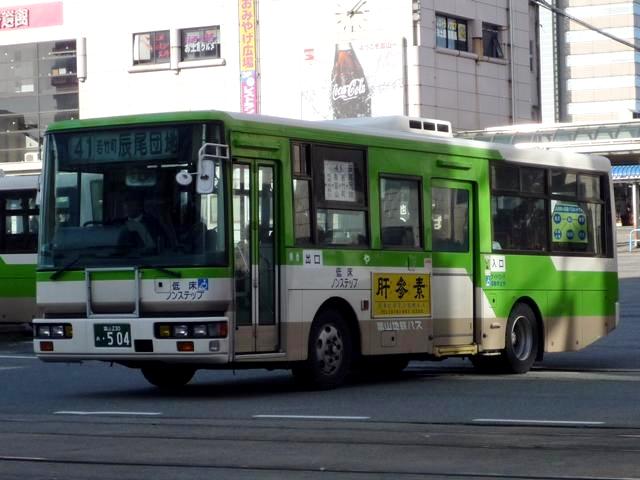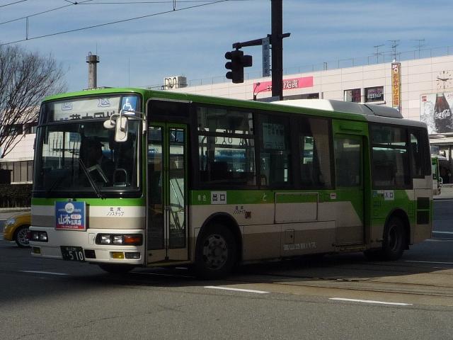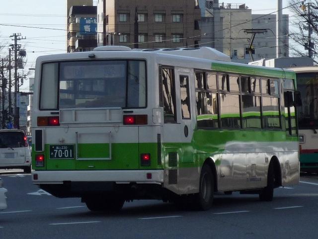 気分転換に北陸地方へ出かけた際の画像を並べるシリーズ。 富山駅前で見た富山地方鉄道のバス画像よせ集めです。今回はノンステップバスを中心 とした低床車を並べていきます。 型式・年式等は 「富山地方鉄道 在籍車両一覧」『バスラマインターナショナル104号』(2007),ぽると出版 「ノンステップバス採用実績」『バスラマインターナショナル113号』(2009),ぽると出版 を参照しました。 富山230あ501.KK-RJ1JJHK(99年車)。 99年以降希望ナンバーで車両の番号管理を開始。 このあたりから自社発注車は中型低床車メインとなります。ということでワンステRJ。 富山230あ504.KK-RM252GAN改(00年車)。 追って中型ノンステも導入開始。2000年頃の中型ノンステといえばスペースランナー顔の 西工ボディ。 富山230う510.KK-MJ26HF改(02年車)。 追って登場した三菱ふそう車はこのタイプ。改造型式だった頃に導入したMJノンステ。 希望ナンバーの故、番号によっては「ひらがな」部が「あ」だったり「う」だったりと結構バラ バラです。 富山230あ516.PB-HR7JHAE(04年車)。 中型ノンステの導入が続きます。国交省仕様ノンステとなった日野HR。 富山230あ522.PDG-KR234J2(07年車)。 HR9m製造中止に伴い、順当に登場した1つ目KR。この年はまとまった台数が導入され ラッピング車となっているものも。 富山230あ529.BJG-HU8JMFP(09年車)。 2009年に久々に登場した自社発注の大型乗合車はなんとハイブリッドノンステップ。 「Airport Liner」表記と航空機のラッピングから分かるとおり、富山駅と富山空港を結ぶ路 線に使用されています。熊本といい空港路線にノンステは最近の流行のようです。 富山230あ534.PDG-AR820GAN(09年車)。 UDと三菱ふそうの両メーカーを導入している事業者では判別に苦労する西工ボディの中 型車。バスラマよりこちらはARとのこと。 富山230(あ?)7001. 希望ナンバー7000代は一体?規模縮小で車両売却がすすむ姫路市営からの移籍車と 思われますが、はたして。 残念ながらあっさり感満点な新デザイン塗装の大型ノンステは見れませんでした。 PR |