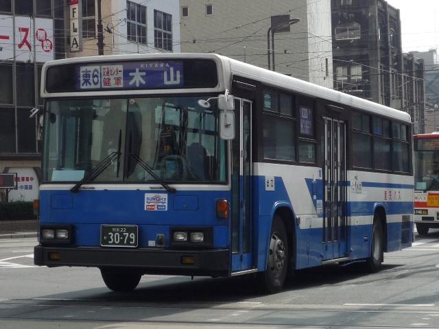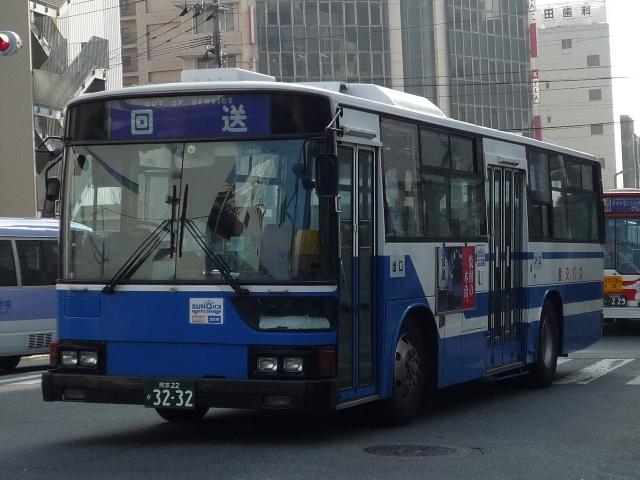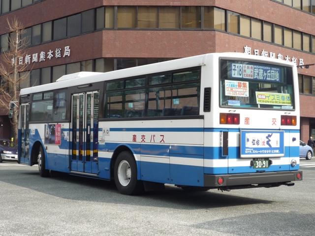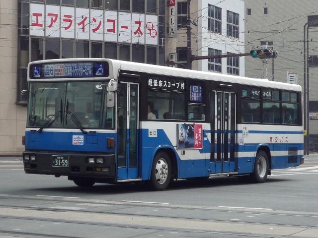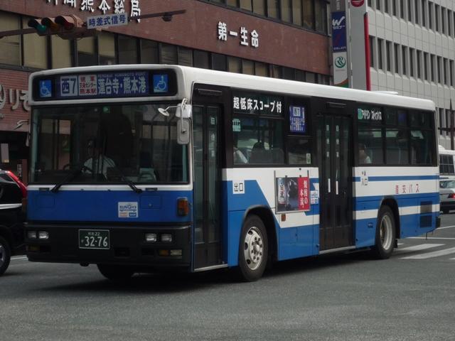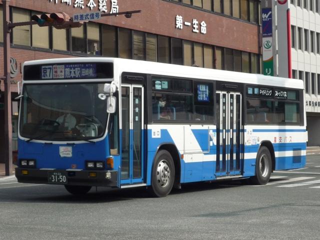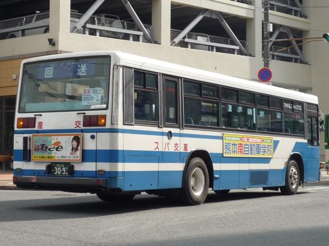 いつになったら終わるのか熊本で見たバス画像よせ集め。 今回は九州産業交通で96年以降に導入した熊本22かナンバーのKC規制車を中心に、 荒尾市営バス引継ぎ車などもあるよせ集めとなっております。 なお、前回同様に九州産交バス所属車と地域子会社を統合した産交バス所属車が混在 している可能性があります。あらかじめ御理解・御了承のほど宜しくお願いします。 型式・年式は「九州産業交通グループ在籍車両一覧」『バスラマインターナショナル107号』 (2008),ぽると出版 を参照しました。 熊本22か3079.KC-LV280N(96年車)。 KC規制車となる頃から一般路線車に限らず導入台数はこれまでに比べ大幅に少なくなり ました。高速車が日野・三菱、一般路線車はいすゞメインの様相。まずは西工ボディのLV。 熊本22か3091.KC-UA460LAN(96年車)。 リヤからの画像だけですが、少数派のUDなので・・・。 一般乗合車の導入台数減少でもとから少ないUDはさらに少なく富士ボディのみ。 熊本22か3092.KC-LV280N(96年車)。 熊本22か3093.KC-LV280N(96年車)。 V8エンジンのキュービックも勿論在籍。96年は西工ボディに比べると若干多め。 熊本22か3108.KC-HU2MMCA(96年車)。 前年導入した三菱ふそうに続くワンステップ車は日野。側面窓にアピールがあるので分かり やすいです。 熊本22か3150.KC-LV280N(97年車)。 97年前半に導入したツーステップのキュービック。 熊本22か3159.KC-LV280N改(97年車)。 97年後半はいよいよワンステップバスの導入が本格化します。西工ボディのLV。 熊本22か3232.P-MP218K改(88年車)。 荒尾市営バスからの引継ぎ車。 屋根上機器配置などから分かるように都営バスからの移籍車です。 熊本22か3276.KC-LV280N改(98年車)。 鳴り物入りでネオプランのノンステが導入された98年、国内メーカーの一般乗合車はワン ステップで導入。引き続き登場西工ボディのワンステLV、キュービックは翌年導入したノン ステのみとなります。 熊本22か3279.KC-UA460LAN改(98年車)。 2年ぶりに導入されたUDの一般乗合車。ワンステップスロープ付きのUA。 なぜこちらは西工ボディにしないのか不思議です。 PR