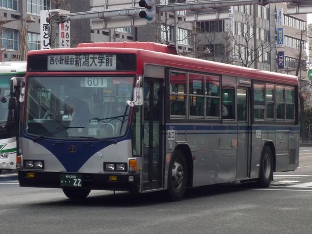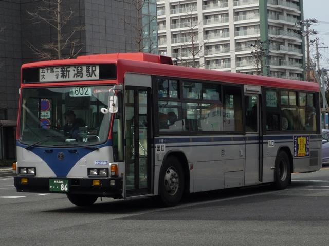 新潟駅前や万代バスセンター周辺で見た新潟交通グループの乗合車画像よせ集め、 今回は社番の頭に「H」がつく、新潟200かナンバーの一般乗合車両を並べていきます。 新潟交通では、おおむね100番以降の車両から車体に社番(といっても登録番号+メー カー記号ですが)表記をやめています。しかし、拙ブログではあくまでも小生の「新潟交通 と言えば」という誤ったイメージ・気分的なものから表記の無い車両もあえて社番という形 で紹介していきます。あらかじめ御理解・御了承願います。 また、BJエディターズ(2000)『BJニューハンドブックスNo.32 新潟交通』掲載分について は、型式・年式を参照しています。 社番:H15-N.KC-JP250NTN(98年車)。 またのっけからリヤからの画像のみ、しかもタクシーが重なっています。 JPは新潟交通電鉄線廃止代替バスとして導入。サッシ窓という仕様も珍しいですが、 標準タイヤを装備するため特にリヤ側がおかしなことになっている異端仕様。ここまでく ると、なぜそこまでしてJPを導入したのかと疑問。西鉄北九州線を例に、鉄道廃止代替 といえばJPというイメージだったんでしょうか。 見たかったバスにもかかわらずこんな画像のみ。まぁ、なまずを新潟市内で見れたので これ以上望んではバチが当たります。 社番:H22-I.KC-LV380Q(98年車)。 特に前回と変わり映えの無いキュービックの長尺。 社番:H28-I.KC-LV380L(98年車)。 そして短尺。 社番:H34-I.KC-LV380L(98年車)。 ラッピング車の例。このあたりの年式からラッピング車となっている車両を見かけます。 社番:H76-M.KC-MP747M(99年車)。 新潟交通初のMPノンステは、オレンジ色主体の特別塗装。 全国的にこの頃、ノンステップ車は従来と異なる塗装という事例を見ることが出来ます。 それだけノンステップバスが特別な存在だったのかもしれません。 社番:H77-M.KC-MP747M(99年車)。 せっかくなのでもう1台。このカラーは結局後に続かず、異彩を放っています。 社番:H86-I.KC-LV380Q(99年車)。 99年車から側面窓が逆T字と呼ばれる仕様に変更。ワンステかと思いきや、新低床バス と呼ばれる段差の小さいツーステップ車です。 社番:H98-M.KC-MP317K(99年車)。 こちらも新低床バスなMP短尺車。新潟交通では少数派です。 社番:H132-I. このあたりから実車には社番表記がありませんので悪しからず。 時期的にエルガにモデルチェンジした頃でしょうか。長尺のワンステップ。 社番:H138-I. もちろん短尺も導入。標準尺の在籍が無いところがポイント。 社番:H150-M. 社番:H152-M. もちろんMPもワンステップ。冷房装置が前方に配置され、目に付きます。 PR