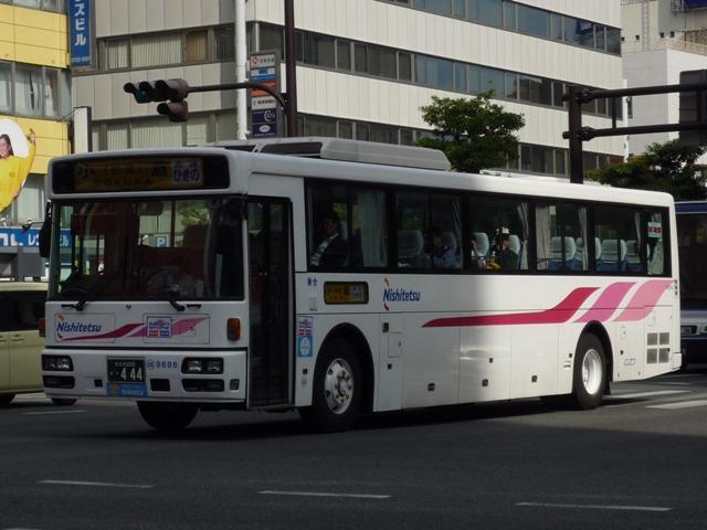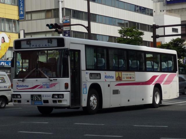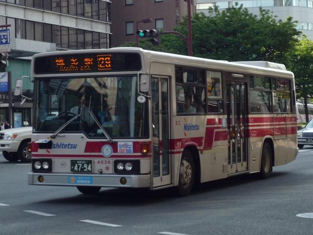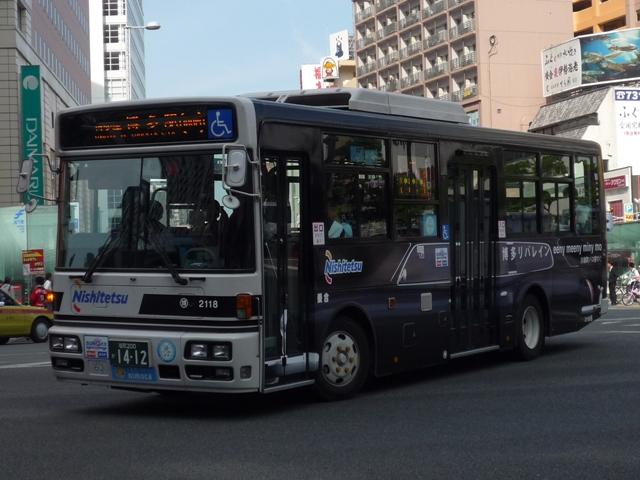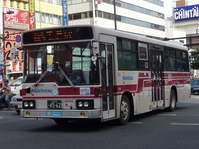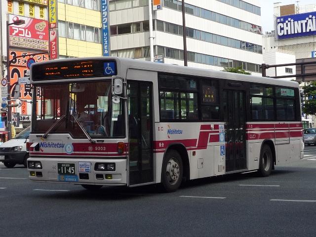忙しい忙しいと言っていながら、今年のGWは九州へ出かけました。2月にも熊本へ出かけ 社番:1134.KC-LV380N(96年車)。 1000・2000番台はいすゞ車。福岡市内はまだ自動車NOx・PM法の対策地域ではないの で、まだまだ58MCボディを見ることが出来ます。 社番:1200.KC-LV380N(97年車)。 こちらは96MCのLV。 社番:2115.PA-LR234J1改(06年車)。 中型車も見かけます。天神や博多といった福岡の中心部を100円で運行する「都心部循環 バス」で活躍。 社番:2118.PA-LR234J1改(06年車)。 同じく「都心部循環バス」で活躍する中型車。ラッピングにあわせた帯色に変えてしまう例。 社番:4636.U-MP218M(92年車)。 3000・4000番台は三菱ふそう車。福岡市中心部を走る一般乗合車の行先表示はほぼL ED改造された模様。 社番:5764.KK-RM252GSN(02年車)。 5000・6000・9000番台はUD。番台区分が多いことから分かるように、一大勢力を築き ます。まずは中型ワンステ。 社番:5832.KL-UA452MAN(03年車)。 社番:9303.KL-UA452MAN(05年車)。 そして大型ワンステ。 社番:8568.U-HT2MMAA(90年車)。 社番が前後していますが、7000・8000番台は日野車。 調べて分かりましたが、この車両が見かけた中での最古参車でした。 社番:7405.KC-HT2MMCA(99年車)。 そして96MCボディ。社番が無ければ相変わらずメーカーが分からない小生。 <新特急車> 社番:3903.KL-MP35JP改(04年車)。 続いて「B型高速車」でおなじみの新特急車。比較的短距離でトイレ無し路線用として路線 バスベースで開発された低コスト高速車。エンジンはターボ付でMS系とそん色ない走りと のこと。 社番:9241.KL-UA452TAN(05年車)。 2005年からUDへメーカー変更。仕様的には変わらず。 社番:9698.PKG-RA274TAN(07年車)。 2006年から直結冷房に変更され、トランク3本となりました。 PR