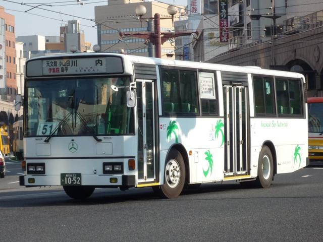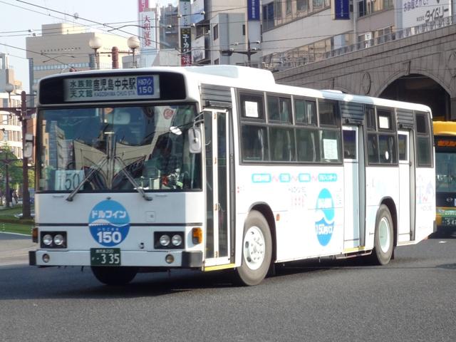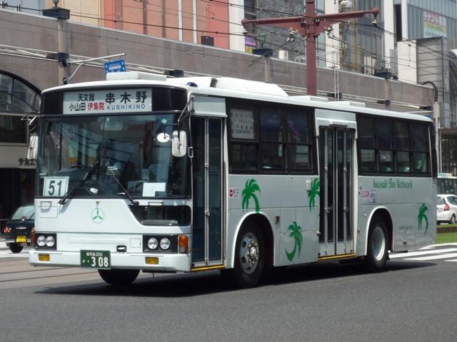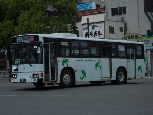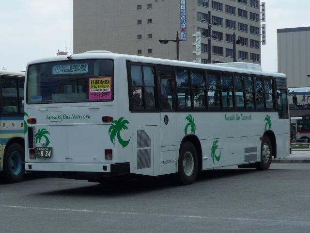 GWに九州で見たバスシリーズ、いわさきバスネットワーク編。タイトル長すぎです。 おそらく拙ブログ2年の中で最も長いものと推察。こんな地味な更新で3年目の挨拶に 代えさせていただきます。 いわさきバスネットワークは2008年に林田バスから事業移管を受け営業を開始したいわ さきグループのバス会社です。林田バス自体、いわさきグループ傘下で経営再建が進め られた林田産業交通(林田バスに改称)を祖とし、これに南九州バスネットワーク解散にと もない空港路線と高速路線を引継いだという、いわさきグループらしい複雑な事業再編で 成立しています。ということで、鹿児島市中心部で見たいわさきバスネットワークの車両画 像よせ集めです。まずは一般乗合車両から並べていきます。 鹿児島22き427. 上部引違いの側面窓と鹿児島交通と異なる仕様のMPは林田産業交通からの引継車。 いわさき傘下となって10年経ち、多くの車両がご覧のような「いわさき」な単色ヤシの木カ ラーに塗り変わっています。 鹿児島22き552. 少数ながら林田産業交通カラーのままの車両も。画像は大型短尺の日野RU。 鹿児島22き1052. いわさきグループ傘下となってから導入された車両。グループ入り当初は新車導入と鹿 児島交通からの転籍で車両代替を進めました。 鹿児島200か308. 新車導入だけではなかなか体質改善が進まず。いわゆるリベット付きの経年車を一掃すべ く移籍車導入を開始。まずは東京都交通局からのエアロスターK。 鹿児島200か335. いわさきグループ3扉移籍車の元祖、千葉海浜交通からの移籍車。グループ外で何故? 等々、車種選択を含めて移籍車マニアを驚かせました。さらに驚きなのは、当初はこれで長 距離路線を走っていたことです。 鹿児島200か410. 東京都交通局からはキュービックも。メーカー、車種問わず移籍車をかき集めている感。 鹿児島200か779. リヤからの画像だけですが、グループで多く見られる西武バスからの移籍車も。いわさき バスネットワークにはRMの短尺移籍車を導入、割と多く見かけました。 鹿児島200か761. 小田急バスからニューステップバス移籍車。神奈川中央交通などステップ昇降装置が付 いていた車両は、移籍先で装置を取り外していることが多く、いわさきバスネットワークに 移籍したこの車両も取り外しているのですが・・・。昇降装置を下げた位置で固定し、珍しい 外観となっています。下を擦らないのか気になります。 鹿児島200か834. 本当に3扉車アレルギーは無い様子。東武バスからHTも移籍してきたようです。 <リムジン車> 鹿児島22き1076. 南九州バスネットワークから鹿児島空港リムジン引継車。いわさきグループはご覧のような 「往年の広告バス」といった風情の車両が多いようです。 PR