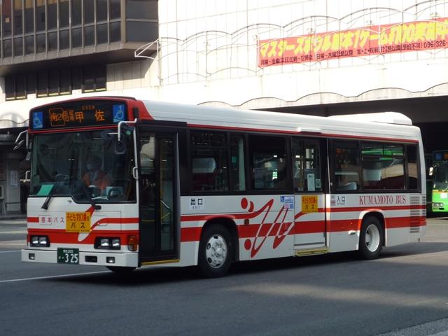 GWに九州で見たバスシリーズ。 2月に行ったばかりだというのに乗り継ぎの関係とはいえ、熊本にも立ち寄りました。 今回は2月に見ることが出来なかった&記録モレしていた熊本バスの画像よせ集めです。 熊本22か2133. のっけから逆光気味画像ですが、前回見ることが出来なかった旧塗装のHT日野車体。 車体更正のタイミングで一時期見られた「く」の字塗装や新塗装に塗り変わっているものが 多く、旧塗装の車両は少ないように感じました。 マメに更新すると書いたものの、こんな感じのお気楽な内容です。あらかじめ御了承の上 続きが気になる方のみ右の「つづき」をクリックしてください。 熊本200か118. 前回はリヤからの画像しか記録できなかった自社発注の西工ボディLR。 やはり逆光気味。 熊本200か262. 自社発注のエルガミオノンステ。 熊本200か325. HR9mノンステ。現在のところ熊本バス最新車。 熊本市交通局からの路線移管の関係で、大型・中型と車両を揃えることとなり、新車導入で は当然出来ず、京浜急行バスを中心としたに多様な移籍車の導入を推進していくことに。 熊本200か565. 阪東移籍車同様の塗装で登場した京急からのエアロスターMワンステ移籍車。 この後に登場した阪東自動車からの富士ボディのHT移籍車は当然この塗装になると思い きや、オレンジ帯の標準塗装&名鉄移籍車から引き継いだ9X年記念塗装・・・。この思いつ いた感が熊本バスならではです。 熊本200か613. 最近登録されたワンステLV。もちろん京急からの移籍車です。 フロントバンパー下部を削った低床パーツ?の、ちょっと特徴ある顔つきとなっています。 2月訪問時に見れなかったので宿題となっていた京王からのJP移籍車はまたも見られず。 JPを見るのであれば、そもそも辻立ちしていた場所が間違っているとも言えるのですが。 様々な移籍車が集まる熊本バス、次は一体どんな車両が導入されるのかとマニア的には 喜んで見ているものの、ここ数年の移籍車ラッシュで数年後の代替計画に影を落としかね ない在籍車の歪な車齢構成となっています。730車を代替した移籍車の代替に苦労し、京 急移籍車で一気に解決を図ろうとしている琉球バス交通&那覇バスなどの事例もあり、喜 んでばかりはいられない状況になるかもしれません。そのあたりを頭に入れながら、今後も 注意して見ていきたいところです。 PR