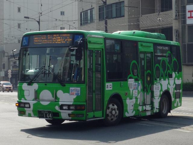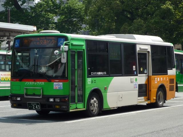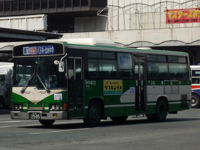 GWに九州で見たバスシリーズ熊本編。 今回は2月に見ることが出来なかった熊本都市バスの画像よせ集めです。 熊本都市バスは2009年4月に熊本市交通局本山営業所を面的移譲を受け運行を開始 しました。現在白をベースにした新塗装へ塗り替えが進められているようですが、GW時 点で塗り変わった車両は見たところ1両のみだったようで、案の定小生とのタイミングは合 わず。ということで、過渡的存在となるであろう市営色+「都市バス」表記の車両画像を並 べていきます。 なお、型式・年式は「熊本都市バス所有車両データ」『バスマガジン35号』(2009), 三推社/講談社を参照しました。 熊本22か2784.U-RM210GSN(93年車)。 GW時点で多く見られた一般的な熊本都市バスの車両外観。正面の動物看板が無いことと 「都市バス」の表記に変わったくらいで、ほぼ熊本市営バスのまま。現在は動物看板があっ た部分に「都市バス」の看板が入ったようなので、この姿は本当に過渡的な状況を記録した ことになりました。 熊本22か2905.U-RJ3HJAA(94年車)。 熊本22か2700.U-RJ3HGAA(92年車)。 登録番号が前後&再掲画像でしかも尺違いで失礼。RJもご覧の通り。 熊本22か3015.HU2ML(95年車)。 バスマガ認定希少型式車も都市バスに在籍。左ななめ前からは撮れませんでしたが、 小生が撮るよりもっと上手な方が記録しているので、リヤだけで十分(負け惜しみ)。 熊本200か164.KK-MJ26HF改(01年車)。 元ゆうゆうバスも都市バスに移管。4色揃ったこのデザインも熊本バスに残るだけになるの でしょうか。 熊本200か243.KK-MJ26HF改(02年車)。 MJノンステも在籍。黄色部分に「都市バス」。熊本都市バス所属車はなかなかクセのある ものばかりの感。 熊本200か245.KK-MJ26HF改(02年車)。 せっかくなのでリヤも記録出来た車両も。図らずも前回市営バス時代に記録していた車両。 次は都市バスカラーに塗り変わった姿を・・・。いつ行けるのか分かりませんが。 マメに更新するのはとりあえずここまでということで。久々に毎日更新しました。 PR