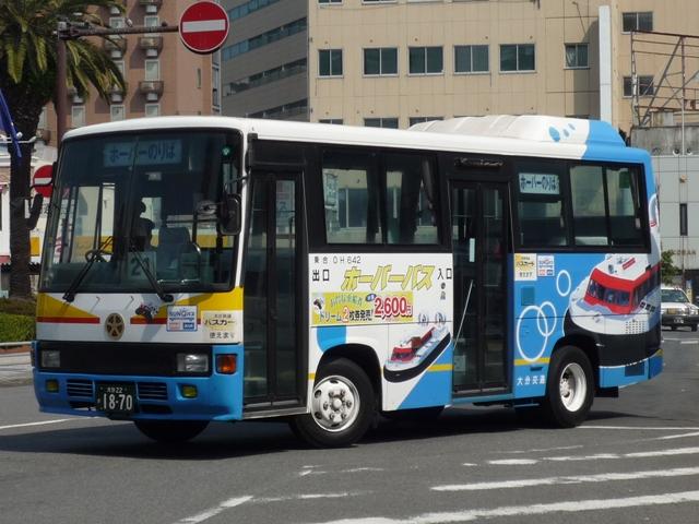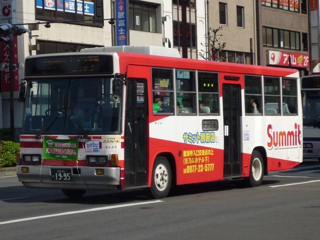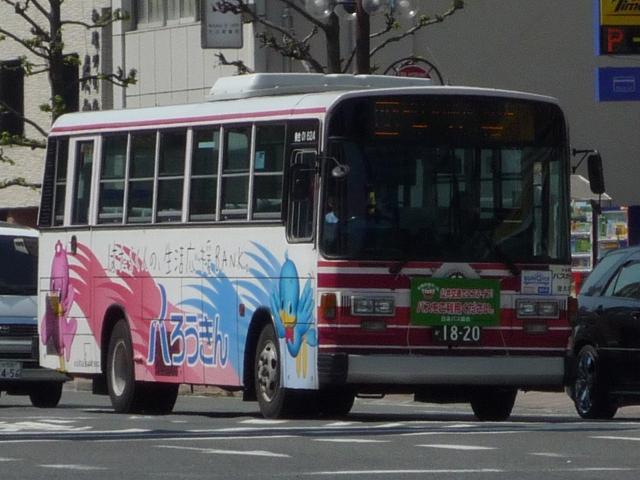 チマチマ更新しているGWに九州で見たバスシリーズ。 大分22か1723.U-UA440LSN(91年車)。 大型の一般乗合車は少数です。通学ラッシュ輸送がメインとか。 大分22か1820.U-LR332J(92年車)。 地域的には西工ボディが多そうに思いますが、富士重工ボディもそれなりの台数が在籍。 スペアタイヤ装置を装備しているためフロントバンパーが下がり、馬面な6EボディLR。 大分22か1870.U-RH1WFBA(93年車)。 大分駅とホーバー乗り場を結ぶ路線専用に活躍するRH。こちらも2台のみ在籍。 大分22か1899.U-RM210ESN(94年車)。 大分22か1898.U-RM210ESN(94年車)。 登録番号が前後しますが、別府駅前で見た富士8EボディのRM短尺車。 大分22か1960.U-MK218J(95年車)。 4メーカー全て在籍しています。モデルチェンジ後のボディのMK。 在籍リストを見る限り、90年前後の一時期、中型車は短尺をメインに導入していたようで すが、このあたりから標準的な9mでの導入となりました。 大分22か1962.U-RM210GSN(95年車)。 ということで9mのRM。 大分市内は広告営業が盛んなようで、ラッピング車の比率が多かったです。 大分22か1992.U-RM210GSN(95年車)。 せっかくなので、別ラッピングの車を。 大分22か1993.U-RJ3HJAA(95年車)。 9mのRJ。 大分22か1995.U-LR332J(95年車)。 そして純正車体のLR。 大分22か2007.U-LR332J(95年車)。 トップドアの車両も在籍しています。この車両は社番「KU I 681」ということから、国東配置 の模様。車両行先表示が方向幕で残ります。 PR