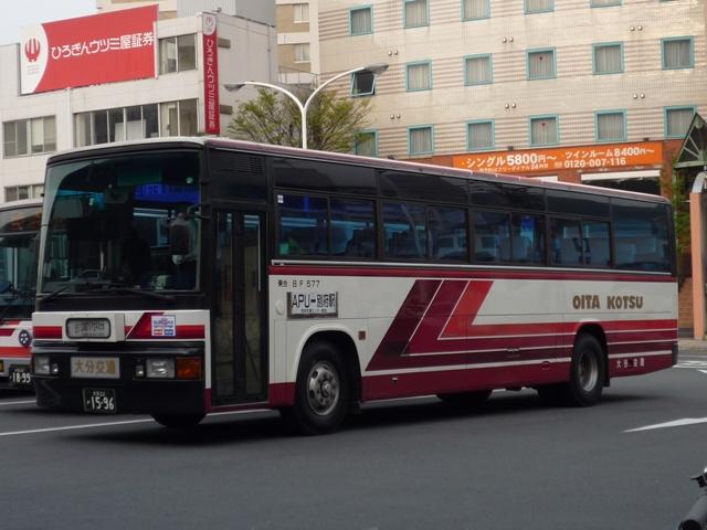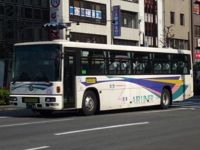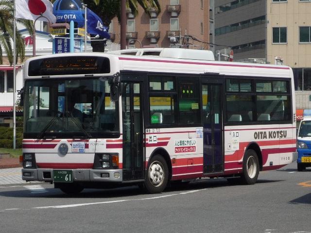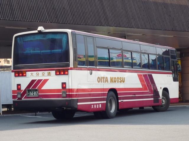 GWに九州で見たバスシリーズ。前回から引き続いての大分交通編です。 今回は大分200かナンバーの一般乗合車とAPU線で使用される転用車や大分空港へ のエアライナーで使用される車両画像等のよせ集めです。 なお、型式・年式は「大分交通グループ 在籍車両一覧」『バスラマインターナショナル94号』 (2006),ぽると出版 を参照しました。 大分200か12.KK-LR233J1(99年車)。 大分交通初のノンステップバス。側面窓上部の「NON STEP BUS」が目印です。 この車両がしばらくの間、大分交通唯一のノンステップバスとなります。参考文献 のバスラマ特集車両アルバムで何故掲載されなかったのかが不思議です。 大分200か61.KK-LR233J1改(00年車)。 タイミング的にみかけた車両はエルガミオばかり。 大分200か64.KK-RJ1JJHK改(00年車)。 そんな中でエルガミオ以外の一般乗合車、日野RJ。KK規制車の「改」ということでエアサ スです。全国的に少数派という、西工ボディのRJは見ることが出来ず。 大分200か82.KK-LR333J1(01年車)。 01年車はなぜか板バネ仕様で導入。中扉が折戸から引戸に変更となったのもこの頃。 これも「仕様の標準化」の流れなのでしょうか。 大分200か136.KK-LR233J1改(03年車)。 見たのは本当にエルガミオばかりの感。同時期にMKやRMも導入されているのですが。 <APU線> 大分22か1596.P-MS725S改(90年車)。 別府市の山間部に位置する立命館アジア太平洋大学(略称:APU)と主に別府市内を結 ぶAPU線。画像のような貸切車やエアライナーからの転用車をメインに使用しています。 最近では大分交通が久々に導入した大型乗合新車も活躍しているとか。まずは西工ボデ ィのMS。後付改造された豚鼻行先表示が、いかにも貸切転用といったところ。 大分22か1687.U-RU2FRAB(91年車)。 こちらは日野。APU線も様々な車種が活躍しています。 <エアライナー> 大分200か74.KL-MP35JP改(01年車)。 大分市内と大分空港を結ぶ「エアライナー」。これまではスタンダードデッカーのニューエ アロバスなど一応観光シャーシの車両を使用していましたが、01年に路線シャーシのい わゆる「E高」と呼ばれるタイプが登場。まず導入されたのは三菱ふそうのMP。 大分200か100.KL-UA452TAN(02年車)。 「E高」の評判は悪くなかったようで増車されます。画像はUDですが、同時期にいすゞも Q尺のLVを導入しています。 大分200か326. シビリアンテールな尿素のRAも登場。直結冷房となってトランク部が拡大されました。 大分200か376. エアライナーはE高で継続すると思いきや、最近登場したのはガーラでした。トランクの容 量などが評価されたのかなんなのか気になります。 エアライナーにまとまった台数が活躍しているはずのスタンダードデッカーなニューエアロ バスは見ることが出来ませんでした。まあいいかとタカをくくっていましたが、大型乗合新車 とあわせてガーラをさらに導入した模様。結局見ることができなさそうです。 <グループ会社> 大分22か1835.U-RM210ESN(93年車)。 大分駅前にも顔を出す国東観光バスの車両。ご覧の通り、大分交通と同じ塗装デザインで 帯色が一部異なるだけ。見てすぐに大分交通と関係があると分かります。大分交通の分離 子会社はご覧のような大分交通の塗装デザインに帯色を変えたものと全く異なる(メーカー 標準カラー)としたものや、緑帯の大分交通旧カラーまで様々です。 分離子会社の塗装は、新鮮味を出すということで、親会社のカラーとは全く異なるものとす る事業者と、単に事業者表記を変えただけというものまで様々です。大分のバスについて 書いているのになんですが、新京成の3社3様の正直どうよ?なカラーや電鉄バスカラーと バスカラーが混在しすぎなケチ王、結局多摩バスカラーにしなけりゃ良かった西東京バスな ど見ていると、あくまで小生の感想ですが、大分交通の一部分離子会社のように帯色を変え るという方法がベストなのではと思います。もっとも大分交通の分離子会社はその後合併・ 統合で1事業者に複数カラーが存在しているのですが。 PR