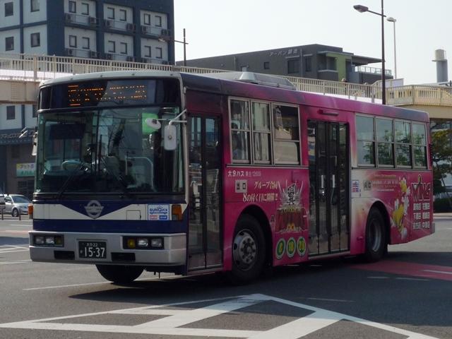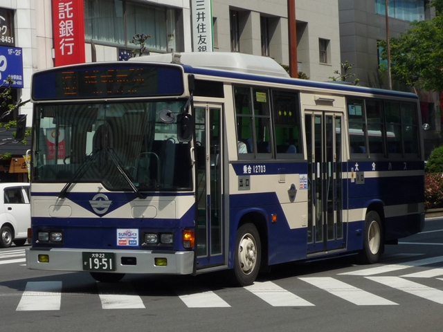 GWに九州で見たバスについてです。 引き続き大分駅前で見た大分バスの画像よせ集め。今回は富士7Eボディから西工96 MC導入前までの日野一般乗合車画像を並べていきます。P・U・KC規制車の区別がつ かない小生の能力不足を逆手に取った恣意的な区分けです。 なお、年式・型式は「大分バスグループ在籍車両一覧」『バスラマインターナショナル121 号』(2010),ぽると出版 を参照し、遅まきながら追記しました(2011年9月追記)。 社番:12609.P-HT233BA(89年車)。 富士7Eボディの日野車。やはりラッピング車の比率が高いです。 社番:12629.P-HT233BA(90年車)。 社番:12632.P-HT233BA(90年車)。 せっかくなのでラッピング車の例、2台。スポンサーは地元色の強いものが多め。 社番:12658.U-HT2MLAA(91年車)。 大型乗合車は富士ボディを多く導入していた時期ですが、若干ながら日野車体の車両も 並行導入しています。 営業所毎・用途等様々な理由で導入を分けていたのかもしれませんが、門外漢には全く 分かるはずも無く。 社番:12677.U-HT2MLAA(92年車)。 ラッピングとなっていない車両もせっかくなので並べておきます。 社番:12703.U-RJ3HJAA(94年車)。 日野車体の中型モデルチェンジ後の車両。もちろん角目で導入。 社番:12707.U-RJ3HJCA(94年車)。 久々に導入された西工ボディの中型車。中扉が4枚折戸の「人にやさしい超低床バス」。 ワンステップバスではなく、出来る限りステップ高を低くしたツーステップ車。このため中扉 部分が魚腹というか、随分下がった特徴的な外観です。また、大分バスでは久々の丸目ラ イトでもあります。ノンステップバス全盛の現在から見れば、過渡的な仕様ですが、亀の 井バスではリフト付き車を導入したりと、「乗りやすいバス」を導入すべく、様々な試行錯誤 が行われたことが分かります。 社番:12717.U-RJ3HJCA(95年車)。 増備車は角目となります。「超低床バス」の表記が無くなってしまったのが残念。 PR