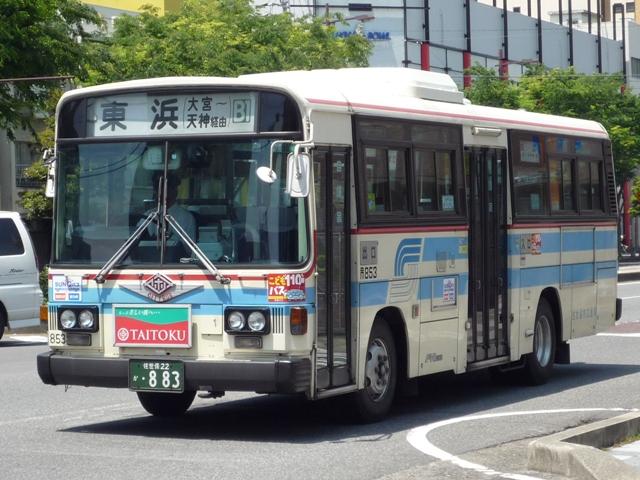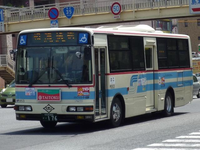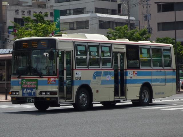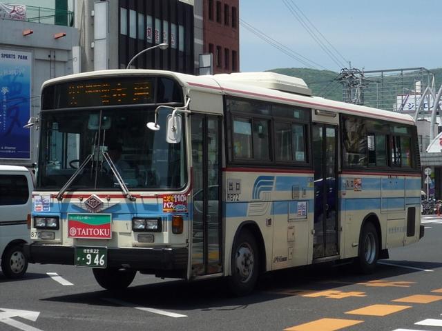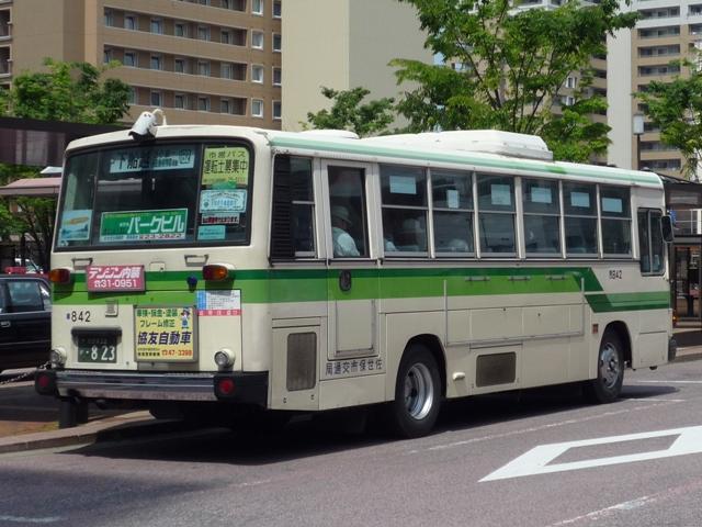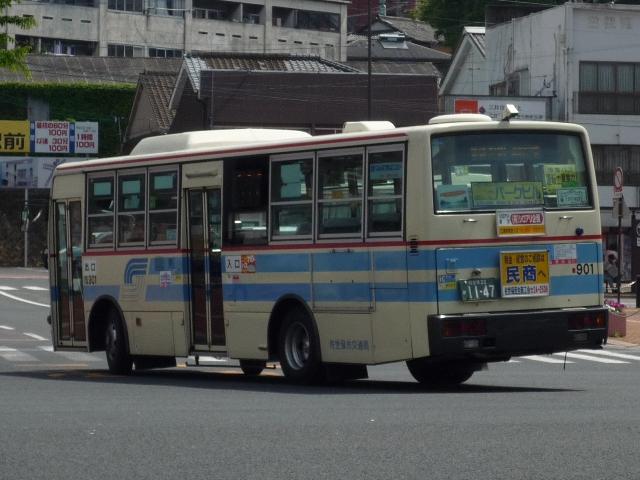GWに九州でで見たバスシリーズ。 更新順序など考えるところがあり、長崎県交通局編はしばらくお休みし、長崎県佐世保 周辺の事業者を片付けていきます。 ということで今回は、長崎県の佐世保市交通局のバス画像よせ集めです。まず自社発注 の車両になります。なお、型式・年式についての資料を持ち合わせておりませんので省略 しています。 局番:市833. 緑帯の古参車LR。前タイヤの後部に川重ボディの「旗マーク」エンブレムが泣かせます。 この緑帯のカラーは1985年頃の一時期に制定されたもので、車両を長く使う佐世保市 交通局のバス車両ですが、さすがに20年を経ており代替等で徐々に数を減らしています。 局番:市842. リヤのみで失礼、富士重工6Eボディの旧塗装RM。 佐世保市営バスを記録するに良い撮影地点は見つけることが出来ませんでした。 局番:市853. 現行塗装のRM。この塗装は緑系のカラーの1つ前の標準塗装の色調を淡くするなどリ ファインしたもの。側面窓がサッシ窓から下部開閉のT字窓、中扉も4枚折戸に仕様変更。 局番:市863. 西工ボディの日野車。仕様はRMと同様ですが銀サッシ。 局番:市872. 角目の富士重工6EボディはLR。中扉は単なる折戸仕様に戻したようです。行先表示機 はLEDに改造していることから、まだまだ活躍する模様。 このあたりの車両まで前面に立派で重そうな「市章(局紋?)」の取り付けがありました。 局番:市886. スペースランナー顔の西工ボディ中型車も在籍。「市章」があった位置にはメーカーエンブ レム。側面窓もサッシ窓となりコストを抑えるところは抑えた仕様変更の感。 局番:市900. 大型車は西工ボディですが、中型車は日野純正車体のレインボー。 佐世保市交通局の見かけた車両は全て前面に広告が入っているましたが、側面の広告は 枠はあるものの掲示している車両は非常に少数。広告掲示価格の関係なのでしょうか。 局番:市901. モデルチェンジしたMK。前中折戸にサッシ窓と仕様の変化は無し。 局番:市905. 続いてLR。純正車体。 局番:市929. フロントバンパーも塗り分け、おしゃれ感アップの富士重工8EボディRM。JMでは塗り分け なかったのですが。ちなみに都営バスからの7E移籍車ではフロントバンパーの塗り分けは 継続されず、一層目立ちます。 局番:市941. エルガも在籍。どうも佐世保駅前はリヤからの画像ばかり記録していた気が・・・。 局番:市951. 現行ボディのエアロスターワンステも在籍。銀サッシ。 局番:市953. 前面広告掲示枠が上部に移動した関係で、久々に市章が復活。ただ、これも一過性だった ようで、移籍車や尿素の新車には見られません。この一過性なところが佐世保市交通局ら しさなのかもしれません。 PR