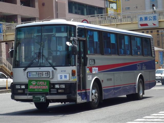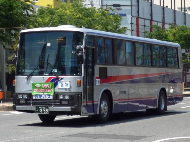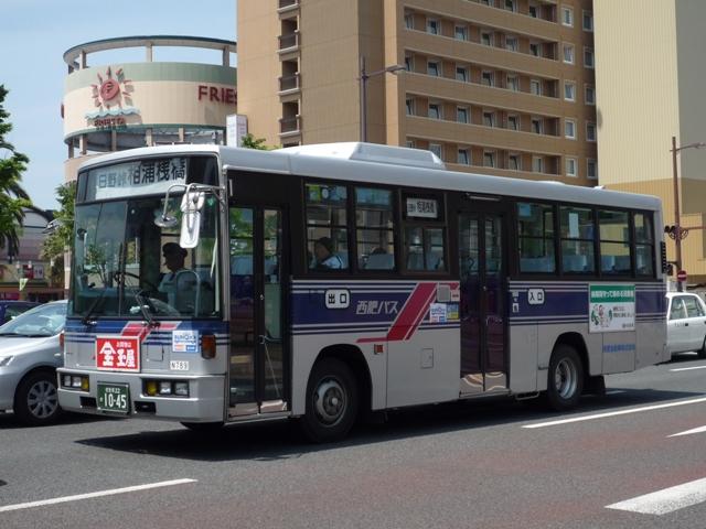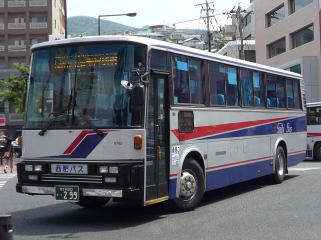 GWに見たバスシリーズ。 引き続き長崎県の佐世保駅近辺で見たバス画像よせ集めです。今回は佐世保を中心と した長崎県西北部に路線エリアをもつ西肥バスこと、西肥自動車で活躍するUD車を並べ ていきます。 なお、型式・年式についての資料を持ち合わせておりませんので今回も省略させていただ きます。 社番:N764. いかにも昔ながらのバスという塗装デザインで、帯に入った「西肥自動車株式会社」表記の 旧塗装車も移籍車導入で数を減らしているようですが、まだ見ることが出来ました。 西肥自動車のUD車は一時期富士重工ボディを中心に導入していました。九州なのに珍し くといった印象は偏見なんでしょうが、バスボディの選択は一概に論じることの出来ない様 々な事情・状況がある事を実感します。 社番:N779. 帯色カラーも明るくなり、デザインも洗練された現行カラー。赤色部は西肥の「S」ということ でしょうか?良いアクセントとなっています。車両によっては、「普通」「特急」等の種別サボ 受けが付いています。 社番:N789. 富士ボディの中型車も在籍。 社番:N808. もちろん西工ボディも在籍しています。このあたりの車両から出入口表記が「乗口」「降口」 と変更されたようです。 社番:N822. そして96MCボディ。この頃からフロントバンパーが黒色塗装になりました。 社番:826. スペースランナー顔の中型車。社番的にJMではなくRMだと思うのですが、ナンバーの付け 替えが激しくて分かりません。行先表示もLEDとなっています。 社番:N736. まだまだ現役R3。正面豚鼻行先表示に「空特」サボが良い味出しています。 社番:N742. 近年転用されたと思われる車両は行先表示がLED。正面取り付け位置がなんとも。 まあ琉球バス交通のR3転用車も行先表示位置は同じ位置ですから驚くものではないの かもしれません。 社番:N749. こちらはLED行先表示に「空特」サボと折衷仕様。 PR