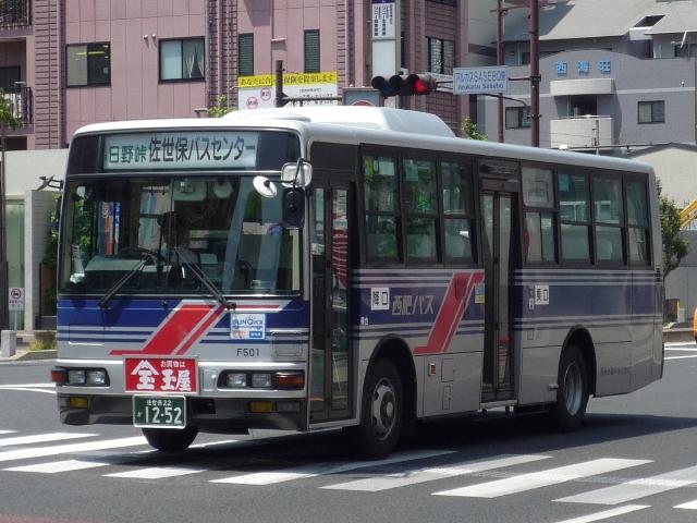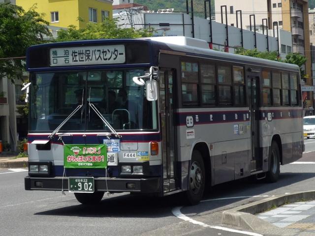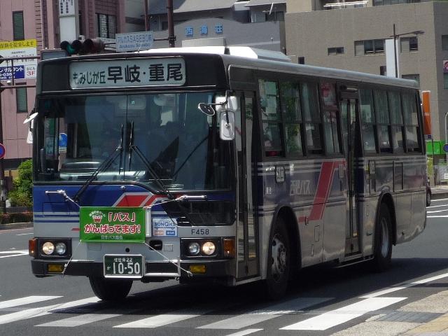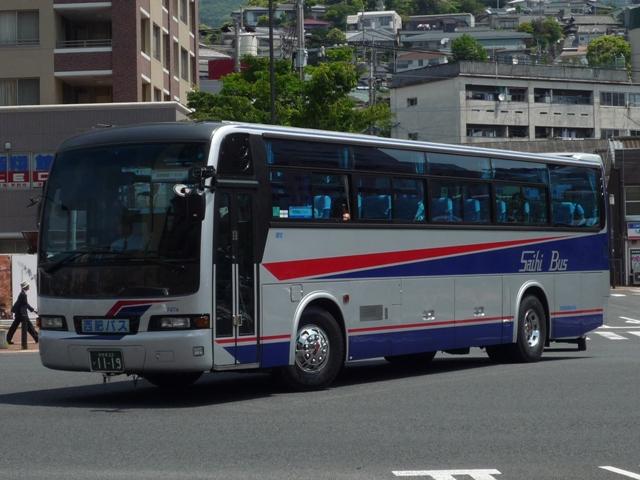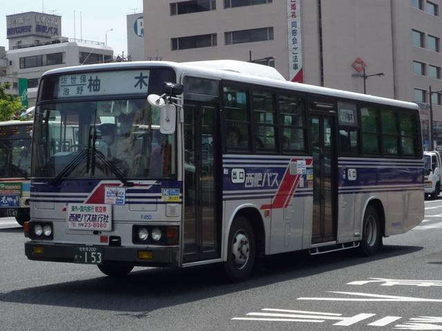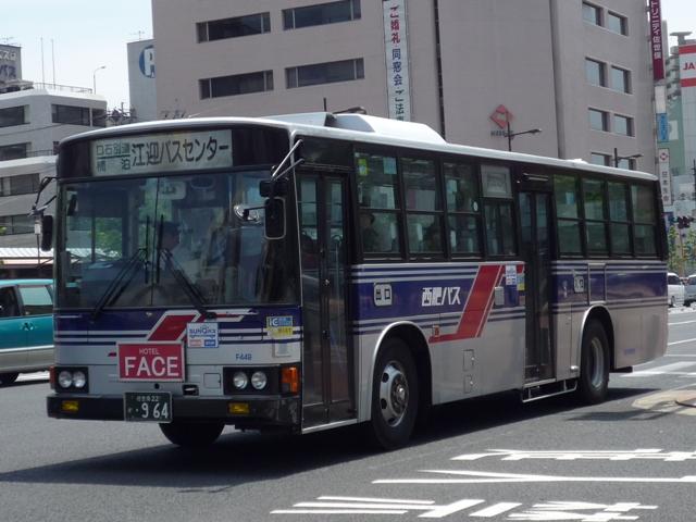 GWに見たバスシリーズ。 引き続き西肥バスこと、西肥自動車のバス画像よせ集めです。今回は三菱ふそう車を並 べていきます。 なお、型式・年式についての資料を持ち合わせておりませんので今回も省略させていただ きます。 まずは西工ボディの旧塗装車。西肥自動車はメーカー毎の社番が存在。 西工ボディの判別に苦しむ小生には優しい事業者となっています。 社番:F449. 西工ボディばかりでないのはUD車同様、三菱ふそう車は新呉羽ボディのエアロスターK を導入。前中折戸にブラックサッシというのが標準的な西肥自動車の乗合仕様です。 社番:F450. ということで、中型車もご覧の通り。 社番:F458. 大型路線車ボディ共通化によってエアロスターMスタイルも当然ながら在籍しています。 涎掛けで正面の広告看板が見えないのですが、スポンサー的に大丈夫なのか他人事な がら気になってしまいます。 社番:F501. ボディのモデルチェンジしたMK。仕様は引き続き前中折戸にブラックサッシ。 社番:542. 最近登場したMK移籍車。昨年から北から南まで様々なところで活躍事例が見られる神 奈中の中型移籍車。真っ黒に塗られた中扉がなんとも言えません。運賃窓は埋められて いますが、屋根上機器などに名残も。 <高速車> 社番:F533. 灯火規制対応したPJエアロ。県外高速車は随分さわやか&メルヘンなカラーリング。 最近ではエアロエースも在籍しているようです。 <貸切車> 社番:F474. 貸切車も見かけました。折戸の西工ボディ。数年後には路線に転用されるのでしょうか。 ご覧いただいてお分かりでしょうが、リヤからの画像を全く記録できず。このあたりに佐世 保界隈でのロケハン不足がお分かりいただけたかと。 PR