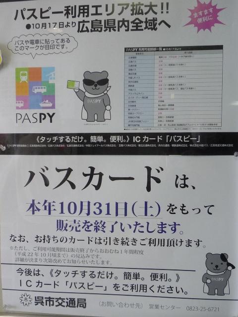 いささか旧聞になりますが、10月21日付の日本経済新聞消費面に「景気低迷時はクマ が売れる?」という気になる見出し記事。なんでもキャラクター業界では景気低迷時には クマの商品が売れるという通説があるとのこと。過去の不景気時にどんなキャラクターが 売れたのか具体的に書かれていないので詳細は分かりませんが、面白い通説です。 そういえば、ここもクマがキャラクターでしたっけ。 くまぴー。ツキノワグマで職業スパイという設定のキャラクターです。 と、いうことでバスカードが販売中止ということで、あわてて広島へ。せっかくなので、広島 でも未訪問だった呉にも足を伸ばしました。呉に出かけたのは移籍車を見たかったことも ありましたが、小生的なルールで行かなければならなくなったからでもあります。 GWに九州へ出かけ、いちおう小生的ルールで日本全県に行ってみることを達成しました。 ただ、よくよく考えてみれば山口県は岩国、鳥取県は米子と全部行ったというにはおこがま しい気もしてきました。そこで、小生的ルールを一部改正してみることに。 <改正点> ・県庁所在市区に行ったことで、対象都道府県を訪問したこととする。 ・公営企業によるバス路線を運行している自治体は全部乗りに行く (廃止代替・コミュニティバスなどは除く) 以上ルールを適用すると・・・、佐賀行っときゃ良かったということに。 ハードルも上げていざ日本2周目をいざスタート。手始めに広島県の呉市に出かけました。 タイトルのクマのキャラクターはいつも通りの下手なネタふり、呉で見たバスをスタートする というお知らせでした。 もちろん広島市内の画像も少々あります。なんとか半月分の更新ネタは確保出来たかも。 ちなみに日本2周目は小生のプライヴェートの充実により予告無く終了する予定。 なお、現状では2周目どころか3周目も可能な状況であるということを付け加えておきますが。 PR