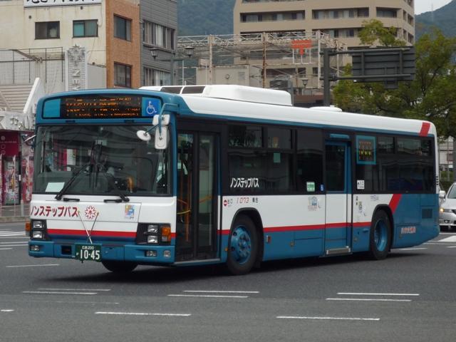 ようやくヒマも出来たので、バスカード発売終了となった広島へ出かけました。広島では 気になっていた赤バスの移籍車や未訪問だった呉へ足を伸ばしたりしました。ということ で、予告通りにこのエントリ。 まずは呉市交通局の概略。1941~42年にかけて呉市内の民間バス会社と路面電車 を買収したことがルーツ。もともと呉市内だけでなく隣接する音戸町などのちに呉市に編入 される自治体への路線網を持ち、現在も広島へクレアラインを利用する高速バスや広島 空港への路線も運行し、市内だけにとどまらない路線網をもっています。かつては隣接 する江田島にも路線がありましたが、ここ数年の事業見直しで撤退しています。そんな呉 市交通局のバス画像よせ集め。その1ではUDといすゞ車を並べていきます。 呉市交通局の車両には独自の局番があります。メーカーを表すアルファベットに登録年 (西暦末尾2桁)+通番となり、WBが4.3m~4.8mは「m」、4.2m以下は「s」が追加 されます。また、97年導入車までワンマン車を表す「o 」の表記があります。 なお、型式・年式は「呉市交通局 在籍車両一覧」『バスラマインターナショナル62号』 (2000),ぽると出版と、『年鑑バスラマ』各号掲載の「ノンステップバス事業者別累計」 を参照しました。 局番:N022.KL-UA452MAN改(02年車)。 呉市交通局では少数派のUD。現在ではCNGノンステップバスを中心に在籍しています。 CNG車を継続して導入しているところが公営バスらしさでしょうか。公式HPによれば、坂の 多い路線環境もあり、今後も継続導入を行うとの事。 局番:Nm9613. CNG車の導入もありますが、ここ数年は移籍車も積極導入しています。低床化の推進と いうことで、ワンステップ車が中心になりますが中にはキワモノ感漂うこんな車両も。 相鉄からのRP、大型短尺車です。移籍車の局番は初度登録年を基本とし、在籍車両の 続番となっているようです。 局番:Im979.KC-LV280L(97年車)。 局番:Im9710.KC-LV280L(97年車)。 呉市交通局のいすゞ車といえば、ボンネットバスが有名。ただしそれ以外となると画像の キュービックワンステが参考資料のバスラマによれば27年ぶりに導入したいすゞ車だとか。 導入に際し、国際ソロプチミスト呉からの寄金があり、車体にその旨の表示があります。車 体には他にも呉市の市花であるツバキも描かれ、つばき号という名称もあるようです。 局番:I 042.KL-LV280N1改(04年車)。 局番:I 031.KL-LV280N1改(03年車)。 画像は導入年度が前後していますが、エルガノンステップバス。 局番:I 073.PKG-LV234N2(07年車)。 局番:Im9414. ここ数年は黒字確保が至上命題の呉市交通局。江田島からの撤退や営業所の統廃合など を行い、移籍車導入もコスト削減策の一つ。画像は東武バスからのワンステップ移籍車。 東武バス時代は特別仕様の黒い樹脂パネルのフロント部が特徴でしたが、塗りつぶされて しまいました。富士重工がバスボディ事業から撤退して数年経ちますが、移籍車導入が活発 化したことで活躍事例が増えるのはなんともいえません。 PR