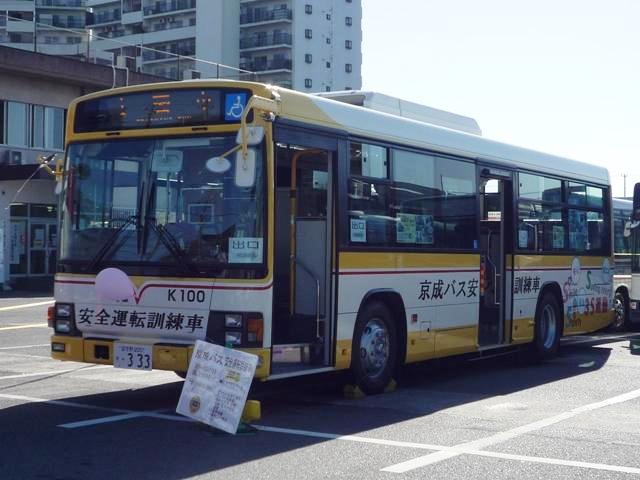 京成バスのファンイベントといえば「部品もぎ取り」が有名ですが、今年は「花輪祭」なるイ ベントも開催されました。好天に誘われ、ノコノコ出かけてきました。 開催場所は「4営」こと京成バス船橋営業所。内容はマニアからすれば物足りなさも感じ ましたが、家族で愉しめるバスイベントという面では大成功でしょう。連接バスやハイブリ ッド、小型観光車と様々な車種を並べ、趣向を凝らした見せ方も面白かったです。まあ、 その見せ方の関係で型式写真を撮ることは難しかったのですが、それがバスの周囲に 殺気だった雰囲気を無くした効果?かもしれません。 社番:K100. 展示車両には安全運転訓練車もありました。京成バスの運転手にならなければ乗車する ことがまず無い車両だけに、イベント展示車両にはもってこいです。しかし、運転手になる には、随分と数値で管理されてしまうのですなぁ。棒ギアでブンブン走らせていた昔の京成 電鉄時代には考えられません。 PR