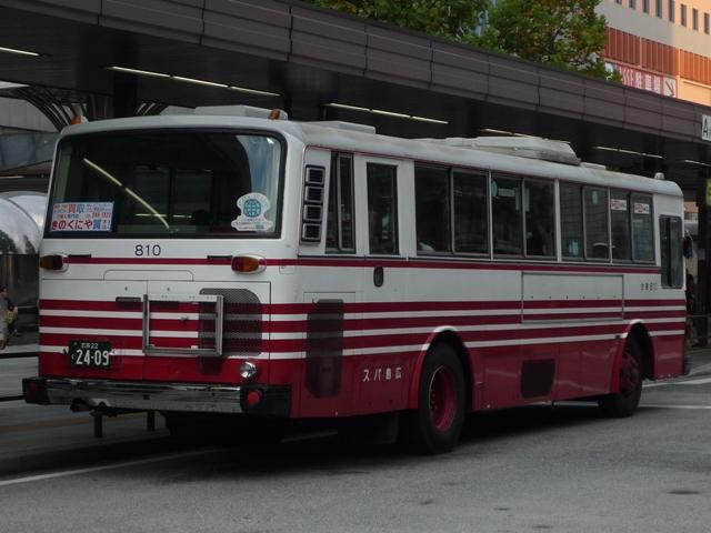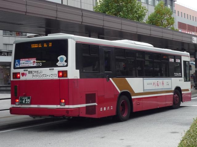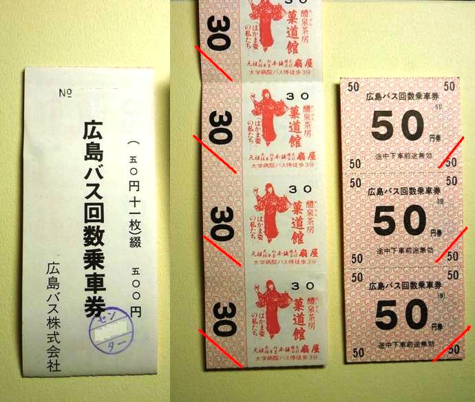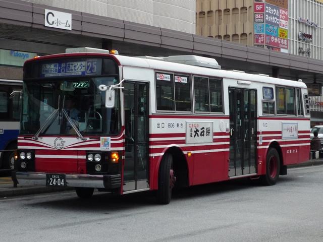 2009年10月に記録した広島バスの画像よせ集めその2。今回は三菱ふそう車の宿題 となっていた画像や新たに登場した車両、そして10月いっぱいで販売を終了した回数券 画像などを並べていきます。 社番:806. 社番:810. 広島バスといえば富士重工5Eボディがまだ多数在籍していることで有名ですが、最近の 移籍車・新車導入で数を減らしている模様。それでもまだリヤにルーバーのある車両も見 ることが出来ました。リベット付の797や801などは見ることが出来ず、健在なのか気に なるところです。 拙ブログを「現在の広島バス5E」で検索された方がいらっしゃいましたが、こんなところで よろしいでしょうか。 社番:510. 西工ボディの三菱ふそう車、広島バスでは少数派です。ちなみにこの車両は小生的宿題だ った1台なんですが、正面からの画像は記録失敗という結果。 社番:513. 2008年導入の尿素エアロスター。バスコレクション登場(予定)記念ということで、並べてお きます。 <移籍車> 社番:702. 都営バスからのエアロスターK移籍車。地味にこの車両も宿題だった1台。 代替が進んでいる都営移籍車なだけに、なんとか間に合った感。 社番:717. 2009年に登場した立川バスからのエアロスターM移籍車。UDの東急移籍車同様にツース テップ車を導入。 <貸切車> 社番:1550. ブレブレ画像ですがせっかくなので貸切車も並べておきます。エアロクイーンⅠ。 <回数券> 2009年10月31日いっぱいで販売を終了した回数券。裏面には「はかま姿のお姉さん」 も描かれた素敵な広告があります。調べたところこのお店は画像の住所から移転した模様。 古い広告そのままでも問題ないくらい、回数券の流通量が少なかったのでしょう。 PR