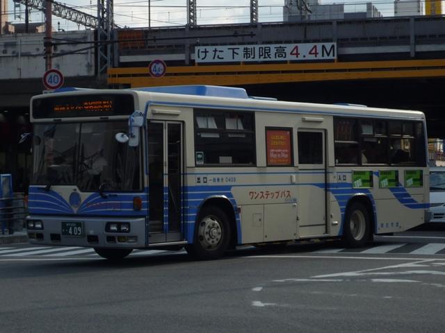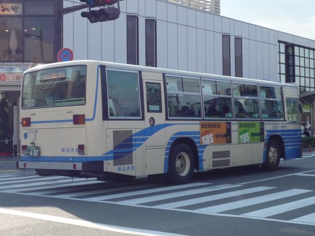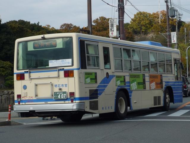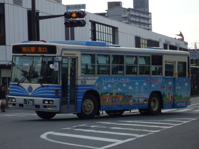 公営企業の「市営バス」に乗ることを目的とした兵庫などを回った際に見たバス画像よせ 集め。逆光だったりタイミングが合わなかったりで姫路は早々に切り上げ、お隣の明石へ 移動。ということで「明石市交通部」の車両を並べていきます。明石駅前が、わりあいバス を記録しやすかったこともあり、姫路に比べ画像も多めに。そのため今回はツーステップ 車が導入された2001年までの車両になります。 画像を並べる前に、まず明石市営バスについて簡単に紹介。 明石市交通部はその名の通り明石市内を中心に一部神戸市にも路線網をもつ事業者で す。ここも姫路市同様に不採算路線を神姫バスや山陽電気鉄道へ路線移管を進め、現 在は明石市東部をメインエリアとし、丘陵地に大規模団地が広がる明舞・朝霧地区への 路線が中心となっています。今のところ市直営での乗合バス事業を継続することとなって いますが、収支は依然として厳しい状況が続いています。 なお、型式・年式は「姫路市営バス在籍車両一覧」『バスラマインターナショナル103号』 (2007),ぽると出版 を参照しました。 神戸22か6484.KC-UA460HAN改(97年車)。 自動車NOx・PM法の対策地域ということと、路線移管時に車両売却を行ったこともあり、 古参はこのあたりの車両。UAワンステップのエアサス車。明石市営バスでは2001年ま でワンステップとツーステップを並行導入し、ワンステップはエアサス車でした。 神戸200か125.KC-UA460HSN(98年車)。 神戸200ナンバーとなった98年導入車。明石市営バスは登録番号を局番とし、車体にも その表記がありますが、3桁時は頭に0をつけています。 まずはラッピングバスとなっているツーステップのUA。ツーステップはこれまでの明石市営 バスの標準仕様である前後扉で板バネとなっています。 神戸200か132.KC-UA460HAN改(98年車)。 同時導入したワンステップ車は中扉4枚折戸の前中扉仕様。 この車両の車体広告は地元の自動車学校である「土山自動車学院」と「西神自動車学院」 のもの。同じデザインの広告から分かるように姉妹校のようです。明石市営バスの広告大 口スポンサーらしく、多くの車両に複数の広告を掲示している車両を多く見かけました。 神戸200か407.KC-MP317K(99年車)。 99年の導入は三菱ふそう車。まずはリヤからの画像のみですが、ツーステップ車。 当時の明石市営バスは西工ボディでの導入が多かった模様。 神戸200か408.KC-MP717K(99年車)。 神戸200か409.KC-MP717K(99年車)。 続いてワンステップ車。中扉が引戸に変更されました。 神戸200か600.KL-HU2PLEA(01年車)。 神戸200か601.KL-HU2PLEA(01年車)。 マニア的に明石市営バスの秘蔵っ子といえばこの車両、前後扉のブルーリボンシティ。 時期的にワンステップ・ノンステップ車が導入の主流となり、このタイプの前後扉車は珍しい 状況。バリアフリー法もあり、このグループが明石市営バスもツーステップ車最後の導入。 以後ノンステップがメインとなりますが、それは次回以降の更新で。 PR