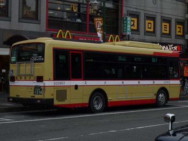 忘れた頃に更新する近所で見たバスシリーズ。 本来であれば、京王バス南でおなじみのサンタコスプレが全社展開やら「南61」の鑓水 中学校入口行き系統増便というネタを先に取り上げるべきなんでしょうが、どうもモチベ ーションが上がらず記録にも行かず。ということで、遅まきながら西東京バスの新車の話 題です。 なお、型式・年式はBJエディターズ(2007)『BJハンドブックシリーズR62 京王電鉄バ ス・西東京バス』掲載分に限り参照 しています 社番:D20913. 恩方営業所に登場したKVノンステ。リヤは今年前期に楢原営業所に登場したLVノンステ 同様、広告枠が窓下の高い位置にあるタイプです。販売メーカーは異なりますが、同じボ ディが揃いました。 社番:D5613.KC-JP250NTN(97年車)。 ちなみに代替された車両はワンステJP。画像は多摩バス時代のものです。 いつの間にやら西東京バスで富士ボディは少数派となりつつあります。 社番:A20954. 社番:A20953. 続いて中型車。西八王子駅発着系統で活躍するRNの代替で登場したKRノンステ。 今のところRNと共に西八王子駅発着系統で活躍している模様。 RNの後継となるモデルが無いことから、予想通り中型車での代替になりましたが、代替 車種が京王電鉄バスグループ同様にKRとは意外でした。 社番:A207. 八王子市地域循環バス「はちバス」も旧ポンチョから新ポンチョに車両更新。 ME無き現在、小型ノンステップバスは新ポンチョしかないので順当といえば順当の導入。 社番:A201. 初期導入の旧ポンチョはあっという間に置き換えられることに。 この他、青梅営業所に在籍する深夜急行バスのKVワンステと、西東京バスの2009年後 期導入新車は日野で揃いました。むしろ青梅のKVを追いかけるべきなんでしょうが、話題 車なのでわざわざ辺境ブログで取り上げるまでもないでしょう。 それにしても、三菱ふそうとUDのバス事業統合の関係もあるのかもしれませんが、一時期 あれだけ導入したUDがまったく導入されないのが疑問といえば疑問です。 社番:A571.KC-RN210CSN(97年車)。 社番:A580.KC-RN210CSN(98年車)。 NOx・PM法対策地域外の氷川車庫では、急な乗客増に対応できないことや座席が少 ないなどで転属の予定は無い模様。来年もRNの代替が進みそうです。 PR