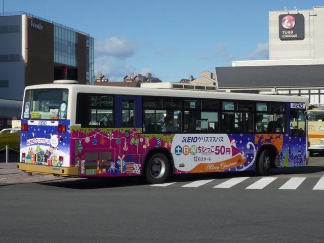 今年もクリスマスとなりました。 クリスマスといえば、京王バス南ではお馴染みのサンタミニバスやサンタさん(営業係)を 見ることが出来る季節です。京王バス南のサンタミニバスに触発されてか、成功事例の 水平展開ということか、今年は「京王クリスマスバス」にスケールアップ。京王電鉄バスグ ループ各社で車内にクリスマス飾りをしたバスやサンタさん(営業係)が見られることにな りました。 なお、型式・年式はBJエディターズ(2007)『BJハンドブックシリーズR62 京王電鉄バス・ 西東京バス』とバスラマインターナショナル各号を参照しました。 社番:D30613.PA-MK27FM(06年車)。 「京王クリスマスバス」はクリスマスをイメージしたラッピングバス。12月よりスタートした「土 日祝日小児運賃50円」アピールの一環として運行しています。 土日祝日にはサンタ姿の運転手(営業係)さんだけでなく、もう一人サンタさんが乗り込むと いうツーマン体制と、ケチ王らしからぬ力の入れようです。ちなみにもう一人のサンタさんは チラシを配ったりシールを配ったり、愛想を振りまいたりとなかなか大変なお仕事です。 社番:D30705.PA-MK27FM(07年車)。 見難いですが、営業所によっては前面行先表示にサンタさんの表示も見られました。 社番:D30705.PA-MK27FM(07年車)。 ちなみにサンタさんが乗っていない場合は、行先表示にサンタ表示がありませんでした。 社番:J30715.PA-MK27FM(07年車)。 「京王クリスマスバス」は、フルラッピングの車両と部分ラッピングの2種類在籍。 どちらも路線を限定して運行していますが、運行本数と車両台数の関係で、頻度は各営業 所でマチマチ。画像は多摩営業所在籍の部分ラッピングの車。この車両を見るのに1時間 待ちだったのは秘密です。 京王バス南の「京王クリスマスバス」運行路線は南大沢5丁目循環。 社番:M40501.KL-UA452KAN(05年車)。 まず部分ラッピングの車両。 京王バス南の該当路線は運行本数も多く、さらに短距離の循環バスということで他所に比 べ、比較的簡単に見ることが出来た印象。 社番:M40505.KL-UA452KAN(05年車)。 そしてフルラッピングの車両。この日はサンタさんも乗務中でした。 「京王クリスマスバス」は12月25日までの運行とのこと。来年以降の展開が気になります。 「京王クリスマスバス」の運行で今年はサンタミニバスは無いものと思っていましたが、例年 通り運行されたようです。小生は見ることが出来ませんでしたが、停留所は賑わったことで しょう。 PR