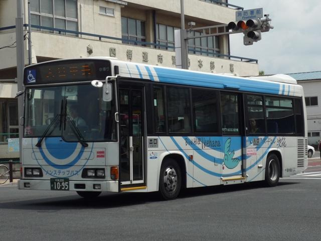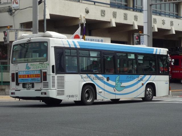 いつも乗るバスや台数が多いなどでありふれた車両と思っていると、気付けば既に見られ なくなっている存在となっていたりします。小生で言えば千葉海浜交通の3扉車や神奈川 中央交通のエアロスターK、横浜市営の機械式AT車・・・。まだまだ見られる存在とタカを くくっていてはいけないと肝に銘じなければなりません。 千葉県の千葉・四街道周辺にバス路線を展開する千葉内陸バスの長尺前後扉車も、気 付けば数えるほどしか残っていません。 千葉内陸バスでは創業時から長いこと前後扉の日野長尺車を標準仕様として導入してい ました。京成グループだけでなく、東日本で長尺の前後扉車を導入する事業者は少なく異 色の存在とも言えます。ただ、導入していた事業者が少ないとはいえ、千葉内陸バスで標 準仕様としてきた理由はもちろんあります。 千葉内陸バスは当時京成電鉄直営だった四街道周辺の団地路線を引き継ぐために設立 された事業者です。路線は当然ながら団地と駅を結ぶもので、混雑の集中する朝方は途 中停留所間での利用は少なく駅で降車する需要がほとんど。そこで後扉から乗車させ、 降車が前扉のため必然的に前方へと乗客が移動することで詰め込みを可能とした仕様に なったようです。同じような団地路線を運行する千葉海浜交通では、降車時間を短縮させる ため前乗りで3扉仕様となっていますが、後ろへ誘導するか前方へ誘導するかの違いだけ で、車内に均等に乗車させいかに詰め込めるかという基本的な考え方は同じです。 ということで、今回は前後扉の長尺車を目的に四街道駅周辺へ出かけた際に記録した画 像を中心とした千葉内陸バスの車両画像よせ集めです。 社番:1095. 社番:1094. 社番が前後していますが、あれだけ在籍してきた前後扉の長尺車も、2009年夏頃に見か けたのはこの2台のみ。年式的にもそろそろといったところでしょうか。ちなみに千葉内陸交 通も千葉海浜交通同様、側面窓の仕様が上部引違からサッシ窓に再変更されています。 前後扉の長尺車が嫌われ、移籍事例は少ないものの、最近では沖縄の東陽バスで活躍し ている車両も見られます。 社番:1096. 長尺車が中心の千葉内陸バスですが、路線需要にあわせ中型車も在籍しています。画像 の車両は千葉内陸バス初の前中扉車。以降は前中扉車の導入となります。 勝田台駅北口を発着する「み春野線」は京成バスからの移管路線ですが、千葉内陸バス 既存路線とつながらない離れ小島路線。なぜ移管先が千葉内陸バスなのか分かりません が、ちばレインボー・ちばグリーンどちらに移管しても中途半端。み春野の開発進展次第で 四街道につなげるのかもしれません。2009年に勝田台駅北口で記録。 社番:1109. 2009年に千葉駅で記録したBRCワンステップバス。まだPASMO導入前です。 低床化の関係で前中扉が主流となった現在の千葉内陸バスでは、中扉より後への誘導に 苦心しているとのこと。 社番:1116. 1109と同じときに記録したBRCノンステップ車。 こちらは後部への誘導以前に詰め込みが出来ないという話も。 社番:1121. せっかくなのでリヤの画像も。こちらは四街道駅周辺で記録。 社番:1123. バードヒル池花カラーのHR。バードヒル池花への路線専属というわけではなく、千葉駅 発着路線で見かけたりとラッピングバス的に使われているようです。 社番:1128. HRの7m車も在籍、路線限定で活躍しているようです。長尺車から7m車まで幅広いライ ンナップです。 社番:1134. 千葉内陸バスにもHRの10.5m車が登場。長尺大型車からダウンサイジングと考えるの か、9m中型車からサイズアップと考えたほうが良いのか。 社番:1138. 京成電鉄直営時代末期頃から不採算路線を中心に千葉内陸バスへ移管が進められ、グ ループ間の転籍車も見られます。京成色のままで活躍するRJワンステップ車。2009年 勝田台駅北口にて記録。 社番:1147. 日野メインの事業者の宿命、OEMでKVノンステ車が登場。エルガと違いが分からない PJ規制車。最近では1つ目KVも登場し、久々にQ尺と長尺車を導入しています。 千葉200あ127. 四街道市のコミュニティバス、市内循環バス「ヨッピィ」の運行も千葉内陸バスが担当。 ということで使用される車両はコースターでなくリエッセⅡ、それにしてもすごい塗装デザイ ンです。コミュニティバスだけあって四街道市役所を起点に、路線バス空白地域の耕地整 理された広大な農業地帯を循環しています。 社番がどこにあるのか分からなかったため、登録番号で並べていることをお断りしておきます。 PR