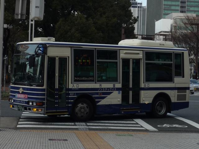 2009年末に名古屋へ行った際に見たバス。 今回は栄周辺で見た名古屋市交通局の一般車両画像を並べていきます。前回以上に適 当な更新です。 なお、型式・年式は『BJハンドブックシリーズR53 名古屋市交通局』(2004),BJエディタ ーズ を参照しました。 <UD車> 局番:NN-67. 名古屋市交通局の局番はアルファベットと数字で構成。頭につくアルファベットは仕様と用途 をあらわし、「N」はノンステップ、後はメーカーをあらわし、「N」はUD車です。先日解散を発 表した西工ボディ。 フロントに「地域巡回バス」の表示があるので、間合い運用で使われた後の回送だったので しょうか。 <いすゞ車> 局番:NMS-9.KK-LR233J1(02年車)。 局番の「M」は中型車の意。現在活躍する中型車は1998年の路線再編で運行を開始した 「支線系統」を中心に、ご覧のような「地域巡回バス」などで活躍。 局番:S-551.KC-LV280N(99年車)。 99年から前中扉仕様に変更。いすゞ車は画像の純正ボディのキュービックと富士ボディ が在籍しています。 局番:NS-151. 大型ノンステップ車。 <日野車> 局番:MH-19.KC-RR1JJAA(98年車)。 路線再編に合わせて98年に大量導入した中型車はツーステップ、全引違窓仕様です。 局番:NH-38.KL-HU2PPEE(03年車)。 CNGのBRCノンステップ車も在籍。 局番:NH-107. 局番が無ければ日野と分からない大型ノンステップ車。 局番:M-03. なごや観光ルートバス「メーグル」で活躍するHR改造車。天井窓や正面はBRCのパーツを使 用するなど凝った車両。相変わらず右斜め後からの画像しかないのが拙ブログの特徴。左斜 め前からの画像は他所で綺麗な画像もあるでしょうから問題ないでしょう。 <三菱ふそう車> 局番:TF-10.KC-MJ218F(99年車)。 「都心ループ」で活躍するワンステップのMJ、局番の「T」も都心ループの意。側面窓が固 定ガラスとなかなかのこだわり仕様。 局番:NSF-3.KK-MJ27HF(03年車)。 局番の「S」は小型車の意で、こちらは03年に増備されたノンステップの7m車。中型車 同様支線系統や「地域巡回バス」を中心に活躍。 局番:NF-65. 2009年に発表前ながら、まとまった台数が導入されたワンステップ車ベースのノンステッ プ車。大量導入されただけあって割と見ることが出来ました。一方で長く導入が続いた3扉 車をほとんど見ることが出来ませんでした。 なんでも2010年1月から市バス開業80周年を記念し、1960年代の旧塗装復元車や 記念グッズ発売などイベント盛りだくさんな模様。年内に私的に名古屋へ行くことがありそ うです。 PR