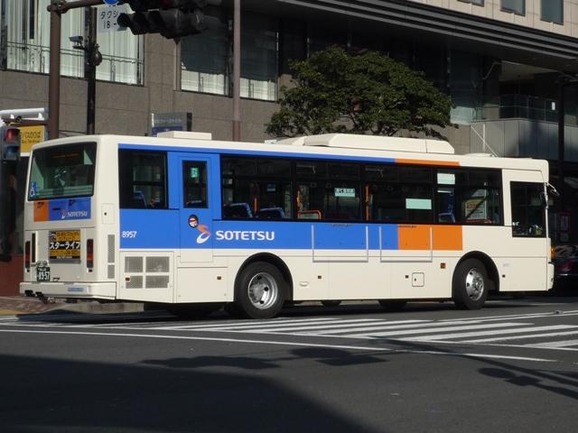 2006年にグループマークを制定した相模鉄道(※現在の相鉄ホールディング)。鉄道車 両はグループカラーに合わせた新塗装への塗り替えが進められていますが、バス車両 は制定から2年近く経った2008年後半にグループカラーの新塗装車が登場しました。 社番:8862. 最初のグループカラー塗装車は相鉄バスに登場した西工ボディのRAワンステ。 思っていた以上に「白いなぁ」という印象、デザインもこれまでの緑帯に比べると随分簡略 化されました。登場したての頃は新塗装の車両を見るため海老名駅へ出かけたものです。 既存車両の塗り替えは行わない方針の為、おおむね半期ごとの車両代替で徐々に増えて きている印象。 社番:8956. 社番:8957. 横浜営業所では2009年に新塗装車が配属されましたが、珍しくUDの車両。 この導入で新塗装車を横浜駅周辺でわりと目にするようになりました。 社番:8960. 横浜営業所にはRAと同時期にいすゞの中型車も登場しましたが、こちらはどうもタイミング あわず。ということで、もう1台RAを並べておきます。 しかし相変わらず旭営業所のワンステベースのMPノンステを見ることが出来ません・・・。 PR