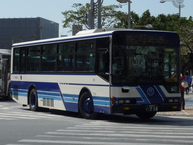 2月に沖縄本島へ出かけた際に見たバス画像よせ集め「沖縄で見たバス2010」、今回は 2008年GW訪問後に登場したと思われる沖縄バスの車両画像を並べていきます。沖縄 バスは本島4社でいち早く730路線車を代替したこともあり、琉球バス交通や那覇バスに 比べると大きく変わったという印象は少な目。とはいえ、中型移籍車の出物が増えてきたこ ともあり、他社同様に中型車の活躍する姿を見かけるようになりました。 沖縄200か610. ということでまずは中型移籍車から。2008年は神奈川中央交通で95年に大量導入された 中型車が各地に散らばり、トップドア車が移籍しているなど馴染みの深い沖縄バスにも当然 のように数台移籍してきました。前扉を見る限り、新ステップは取り外されている模様。 市外線で活躍しているため中扉は神奈川中央交通時代同様に「しめきり」です。 沖縄200か611. せっかくなのでもう1台。第一次導入車両は前面の運賃幕窓が扉側に若干出っ張ったタ イプです。 沖縄200か632. やや間を開けて導入された第二次導入車。運賃幕窓の違いがお分かりいただけるかと。 沖縄200か637. 同じくもう一台。系統板掲示位置が変更。使わない運賃幕窓を残しておく必要も無いという ことなんでしょう。 沖縄200か641. 沖縄バスでここ数年継続して導入される乗合新車。尿素MPワンステップ車です。 乗合車は移籍車ばかりがデフォの沖縄にあって、継続導入を続けるところに沖縄バスの意 地を感じます。 沖縄200か705. 最近導入したと思われるトップドアのエアロスターM移籍車。仕様的に自家用・特定チック なので元事業者判別は難しそうな1台です。 沖縄200か713. そしてニューエアロスターも移籍車として導入される時代になりました。京浜急行バスから のワンステップ移籍車。スロープが無いためか塗装はこれまで通りの沖バスカラーで登場。 行先表示はLEDを装備し、今後の移籍車から本格的に採用されるのか気になるところ。 沖縄200か714. 京浜急行バスからは複数台移籍してきた模様。 自社発注や初期導入の移籍車など古参格の車両や、横向きシート配置がネックで那覇の 予備車となっていた京急ワンステ移籍車も姿を見ることが出来ず。このあたりの車両と代替 されたのでしょう。730車代替後、長く続いたエアロスターK天国も変わりつつあるようです。 PR