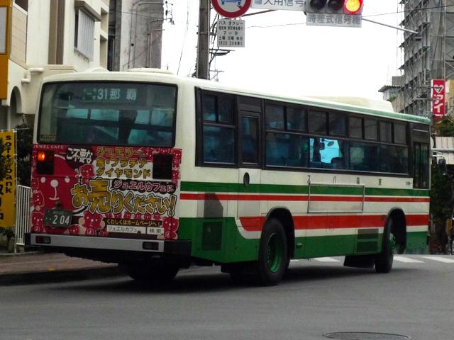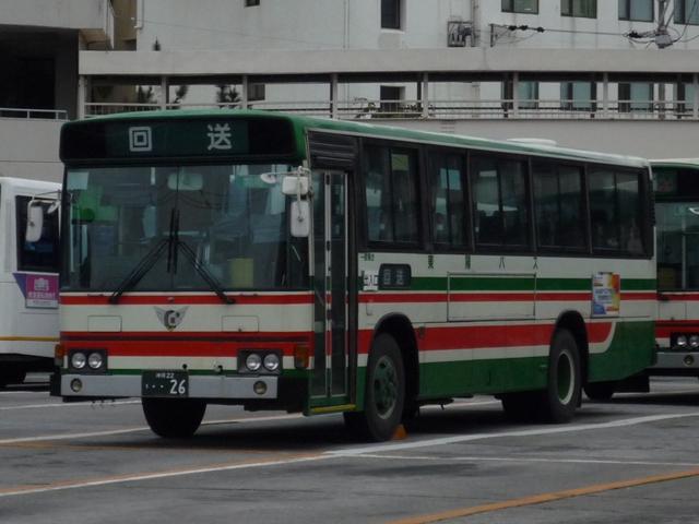 2月に沖縄本島へ出かけた際に見たバス画像よせ集め「沖縄で見たバス2010」。これま で那覇バス、琉球バス交通、沖縄バスのここ数年に導入された車両を並べてきました。 順当にいけば東陽バスの最近導入した車両を・・・となるのですが、ほとんど記録出来ず。 730車を代替した中型車が91・191番メインのため那覇BTで見られないことや、そもそ も県庁北口交差点には30番泡瀬東線の車両しか来ないという理由も・・・。 ということで、今回の更新は東陽バスの沖縄22きナンバーの乗合車両画像よせ集めです。 2008年に並べたものとほぼ同じ内容というのがアレですが、お付き合いください。 沖縄22き26. いわゆる730車が本島4社で最後まで残った東陽バスですが、動態保存車の1両を除き 代替が完了しました。自社発注の古参格はこのあたりの車両になるのでしょうか。側面が 全引窓仕様のブルーリボン。 沖縄22き204. このあたりの自社発注乗合車側面は上部引違窓で青の色付ガラス仕様。 沖縄22き296. U規制車初期も同様。 沖縄22き338. 沖縄22き339. その後、サッシ窓仕様に変更。公式側とリヤ側とで車両が異なり失礼。後部のみラッピン グ広告は東陽バスに限らず、沖縄で見かけることの多い掲示方法です。 沖縄22き413. 沖縄22き412. こちらも登録番号が異なりますが同仕様ということで御勘弁を。引き続き後部はブルーリ ボンタイプのテールです。 沖縄22き465. 前面の開口蓋が大きくなったタイプ。自社発注の路線車を導入していたのはこのあたりま ででしょうか。 沖縄22き685. リヤからの画像だけですが、屋根上機器から推測される通り都営バスからの移籍車。 『僕たちの大好きなバス』(2008),洋泉社によれば1986年車とのこと。 PR