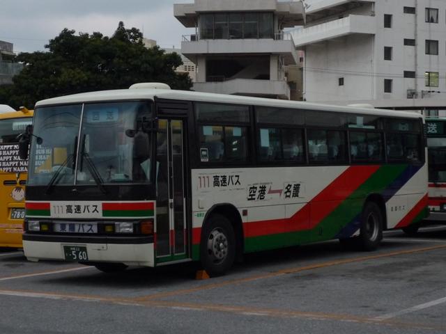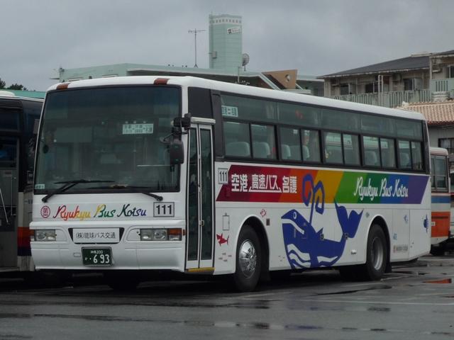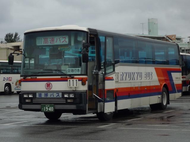 2月に沖縄本島へ出かけた際に見たバス画像よせ集め「沖縄で見たバス2010」。 これまで本島4社毎に画像をまとめてきましたが、今回は趣向を変えて4社共同運行の 111番高速バスで活躍している車両をいっぺんに並べていきます。高速バスには各社 曲者揃いの車両が揃っており、バラバラで紹介するには勿体無いという意味から。結局 2008年訪問時にまとめたエントリと同じ仕分け方です。 <那覇バス> 沖縄200か210.P-RU606BB(89年車)※1。 まずは那覇バスから。リヤからの画像しか無いのはいかがかと・・・。2008年訪問時と車 両の変化は無いのでご勘弁を。貸切移籍車をさらに転用したブルーリボン。 <琉球バス交通> 沖22か1940.P-RA53TE(86年車)※2。 続いて琉球バス交通。 2008年同様にR3ボディの貸切転用車が主力として活躍中。この車両は側面固定窓と、 元は高グレードの貸切だったものと推測。扉は折戸改造されずスイング扉そのままです。 ちなみに今回の名護までの乗車車両、前回が沖縄バスのMPでしたからバス運があるの かもしれません。 沖縄200か693. 今もR3が主力の琉球バス交通高速バスですが、中にはこんな車両も。レインボーカラー に鯨が描かれたライト周りがモデルチェンジされたタイプの富士7Mボディ。ナンバーが新 しいので貸切転用車なのか移籍車なのか分からず。高速バスや120番も車両代替が進 むのでしょうか。 ※沖縄のバス様より貸切車からの改造とコメントをいただきました。2010年3月25日追記 <沖縄バス> 沖縄22き178.P-MS715N(90年車)※3。 数年前に貸切車から高速車に転用されたMS、貸切カラーに高速バスの表記を追加。 沖縄バスといえば熱心な呉羽ユーザーとして有名、貸切車もエアロバスKが中心的存在。 またしてもリヤからの画像のみ。 沖縄22き415.U-MP618M(93年車)※3。 沖縄バスの高速車といえば路線シャーシのMP。こちらは高速車専用カラーとなっています。 バスラマによれば通常予備車ということですが、今回も高速車として活躍中の姿を見ることが 出来ました。 <東陽バス> 沖縄22き560. 貸切転用のブルーリボン?と思いきや実は路線シャーシの観光顔タイプ。後述のセレガ 導入で予備的存在なのか、この日は那覇BTでお休み中でした。 沖縄200か579. 現在の東陽バス主力高速車は東武バス日光からのセレガ移籍車。塗装は現行の貸切カラ ーとなっています。 型式・年式の参考文献 ※1)「那覇バス車両一覧」『バスラマインターナショナル86号』(2004),ぽると出版 ※2)「琉球バス車両一覧」『バスマガジン2号』(2003),三推社/講談社 ※3)「沖縄バス在籍車両一覧」『バスラマインターナショナル106号』(2008),ぽると出版 PR