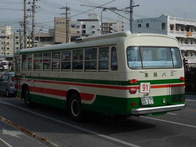 4月に沖縄本島へ出かけた際に見たバス画像よせ集め「沖縄で見たバス2010改」。 前回の訪問からわずか2ヶ月しか経っていないことや、「涎掛け」がかかっていたりします が、色々と記録モレしていた車両を並べていきます。 第1回目の更新は中途半端な内容だった東陽バスの乗合車両画像よせ集めからスタート、 まずは自社発注車を並べていきます。 沖22か906. 沖縄の乗合車といえば、欠かすことの出来ない730車。現役の730車が最後まで残った 東陽バスですが、現在は動態保存車の1台が残るのみ。毎週日曜に91・191番城間線で 運行しています。車体は内外装とも補修され、今後も末永い活躍が期待できそうです。