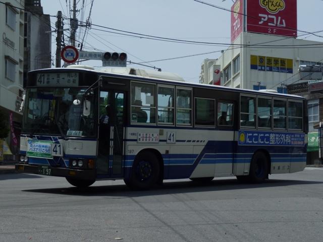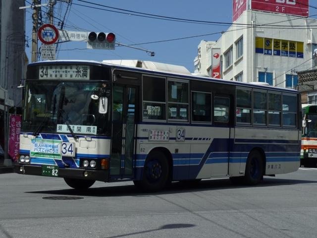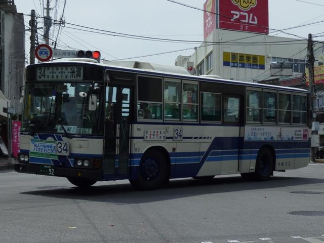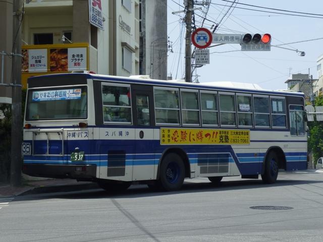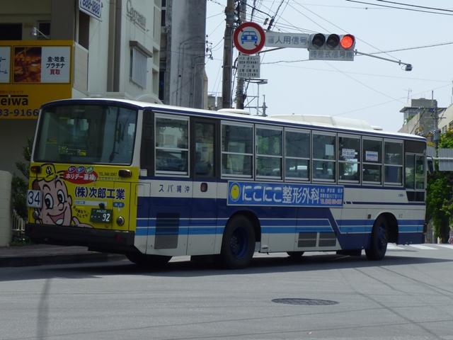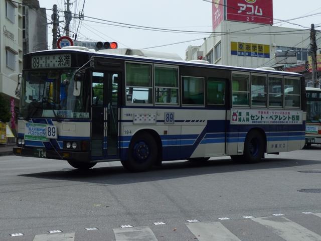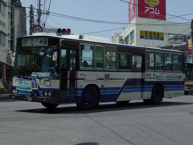 4月に沖縄本島へ出かけた際に見たバス画像よせ集め「沖縄で見たバス2010改」。 東陽バス編では記録モレしていた車両を中心に並べていきましたが、ほとんど同じ内容 というのも退屈なので、沖縄バス編ではまだ並べていなかった移籍車画像からスタート します。移籍車は台数が非常に多いので、今回は京阪移籍車直前までの車両をまとめ ていきます。 なお、型式・年式は、「沖縄バス在籍車両一覧」『バスラマインターナショナル106号』 (2008),ぽると出版を参照しました。 沖縄22き537.P-MP218K(88年車)。 まずは沖縄バスでは少数派のエアロスターMボディのトップドア移籍車。前扉横の窓に行 先表示の跡があり、移籍元の手がかりになるのかどうなのか。 沖縄200か33.P-MP218K(88年車)。 こちらはエアロスターK、自社発注車と異なるシルバーサッシの上部引違側面窓が目立ち ます。 沖縄200か82.P-MP218K(88年車)。 沖縄バスの移籍車と言えば神奈川県内事業者からの車両が多数在籍することで知られて います。まずは横浜市交通局からのMPでK尺の車両。 沖縄200か92.P-MP218M(88年車)。 本牧配置だったM尺も導入。 沖縄200か159.P-MP218K(89年車)。 こちらは川崎市交通局からの移籍車。 沖縄200か183.P-MP218M(88年車)。 運賃窓があるMPは神奈川中央交通からの移籍車。神奈川県内事業者からの移籍車も、 初期導入の車両を中心に代替が進んでいる模様。 沖縄200か190.P-MP218M(89年車)。 神奈川県内事業者からの移籍車に混じってトップドアの車両も同時導入。自家用なのか 特定車なのか全く分からず。 沖縄200か194.P-MP218K(89年車)。 引き続き横浜市交通局からの移籍車。横浜市交通局では以後機械式AT車となるので、 MT車の廃車を揃えるだけ揃えた印象。 沖縄200か197.P-MP218M(89年車)。 もちろんM尺も在籍。 沖縄200か251.P-MP218K(88年車)。 登録時期にやや間があって登場した88年車。側面行先表示跡部のガラスを全面黒く している特徴から再登録した車両かもしれません。詳細不明。 PR