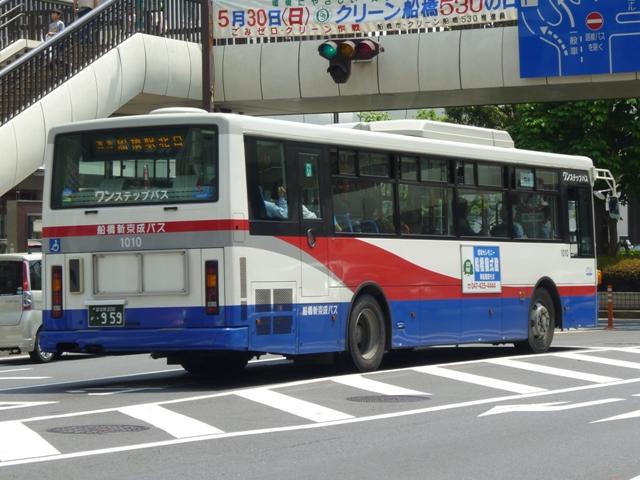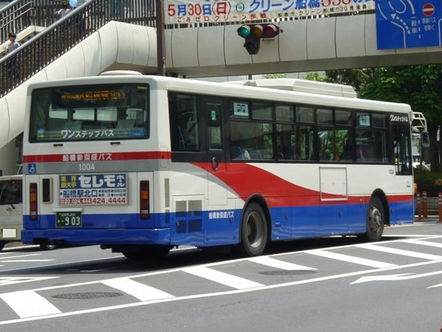 沖縄で見たバスについての更新が続きすぎたので、たまには違う場所のネタでも。4月に 沖縄へ行った反動もあり、近場ばかりをおとなしく過ごしたGWに記録した画像を並べてい きます。 ということで小生定点観測シリーズ、2009年1月編以来の船橋で見かけた「船橋新京成 バス」のバス画像よせ集めになります。今回は分社化後に導入した車両になります。正直 なところ、2009年編とほぼ同様の内容になることをあらかじめ申し上げておきます。 なお、型式は 『年鑑バスラマ』各号掲載の「ノンステップバス事業者別累計」 『トラベルムック 鉄道ダイヤ情報プレミアム バス新型車両コレクション東京・神奈川・千葉・ 埼玉』(2009),交通新聞社 を参照しています。 社番:1004.PKG-RA274MAN。 シビリアンテールの大型尿素ワンステ。PASMO利用可能事業者の多くは、「バス特」をP Rした涎掛けを装着した車両が目に付きますが、船橋新京成バスでは装着していない車両 をチラホラと見かけました。バス共通カードと比べると、たいして得にならないバス特のPR は勘弁してほしいものというのはマニアの戯言です。 社番:1010.PKG-RA274MAN。 引き続き西工RAを導入。同時期に習志野新京成バスで登場したAPに比べると印象が薄 い導入でもありました。 社番:1013.PKG-RA274MAN。 2008年に諸事情で習志野新京成バスからグループ間転籍した尿素ワンステ車。 習志野新京成バスは船橋新京成バスよりも早く尿素大型ワンステ車を導入していたことも あり、古い登録番号が新しい社番というような状態。まずは各地で見かけるラッピング広告 車となっているRA。 社番:1018.PKG-RA274MAN。 2009年はリヤや側面の「船橋新京成バス」文字ステッカーに汚れが目立ちましたが、今 回はそのようなこともありませんでした。たまたま汚れていた時に見ただけなのかもしれま せん。 社番:1024.PKG-AP35UM。 「涎掛け」無しのAPも見ることが出来ました。 社番:1025.PKG-AP35UM。 1013~1024が習志野新京成バスからの転籍車で、1012以来の登場となった船橋色 のAP。2009年のエントリでは、「今後の主力となるのか、少数にとどまり名物的存在とな るのか気になるところ」、と書きましたが・・・ 社番:1026.PKG-RA274MAN。 AP導入は結局続きませんでした。西工ボディのRA。 社番:1028.PKG-RA274MAN。 おそらく2010年の新車と思しきRA。西工解散が発表され、今後の導入がどうなるのか。 松戸で導入している縁でいすゞに統一されるのか、三菱ふそう+UDの新会社導入となる のか、新たな気になるところです。 <中型車> 社番:1401.KK-RM252GAN(04年車)。 新京成電鉄よりバス事業分社化後、初導入となった自社発注車。新京成電鉄時代に車 両代替が完了していたこともあり、分社他社と異なり1両のみの登場でした。新塗装をお 披露目するためにとりあえず導入した感。 社番:1403.PB-RM360GAN(06年車)。 分社化当時の新車は松戸を除くと、中型ノンステップ車ばかりでした。 船橋新京成バス塗装の車両がまとまって導入されたのは日野エンジンを搭載したPB規 制車からになります。 社番:1412.PB-RM360GAN(07年車)。 ステッカーが緑色の国交省05年標準仕様ノンステップバスとなったRM。 最近は大型ワンステップ車メインの導入ですが、三菱エンジン搭載のRMも少数在籍して います。 PR