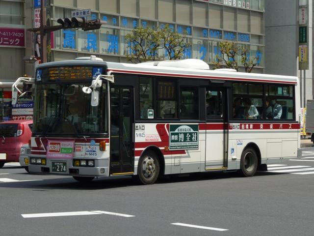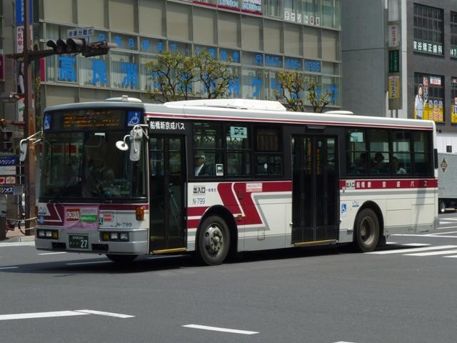 小生定点観測シリーズ、2009年1月編以来の船橋で見かけた「船橋新京成バス」のバ ス画像よせ集めの続きです。今回は新京成電鉄時代に一新されたマルーン帯カラーの 車両と元船橋バスの車両を並べていきます。 社番:N-788. 社番:N-799. ツーステップ車の代替が進み、今回見かけた旧塗装の大型車は全てワンステップ車でした。 なお表題の「船橋 新 京 成 バ ス」は、旧塗装車の側面社名表記をイメージしたものと なっております。 社番:N-803. こちらはフロントバンパー形状が微妙に異なる車両。交換したのでしょうか。 <中型車> 社番:N-M40. 続いて中型車。2002年に登場したUDの中型ノンステップ車。 富士ボディ愛好ユーザーの新京成電鉄ですが、中型ノンステップは西工ボディのみ対応 していたことから西工ボディで登場。古くは京成車体のカマボコが在籍していたので、久々 の西工モデルとなるのかもしれません。 社番:N-M45. ワンステップ車は引き続き富士ボディで導入。 新京成電鉄直営末期は大型車代替に中型車を導入し、ダウンサイジングが進みました。 社番:N-M54. 富士重工のバスボディ製造撤退のため、西工ボディの本格導入が進みます。ただ、富士 ボディに比べると妙に色あせている印象が・・・。 <元船橋バス> 社番:F-128. 2007年に合併した船橋バスからの引継ぎ車も在籍。「船橋バス」表記を消しただけのため、 習志野色などカラーバリエーションの多い船橋新京成バスにさらなる彩りを加えています。 まずは長年の船橋バスカラーで唯一引き継がれた、富士ボディの大型ワンステップ車。 社番:F-129. 船橋バスでは、エルガ導入から塗装デザインが変更されました。引継ぎ後は正面にあった 「F Bus」の表記が消されて、なんだか物足りない感じです。 船橋グリーンハイツへの路線も、東船橋駅発着路線が開設されるなど随分様変わりしてき ました。いずれは船橋新京成色に塗り変わるのか、松戸に転籍されるのでしょうか。 PR