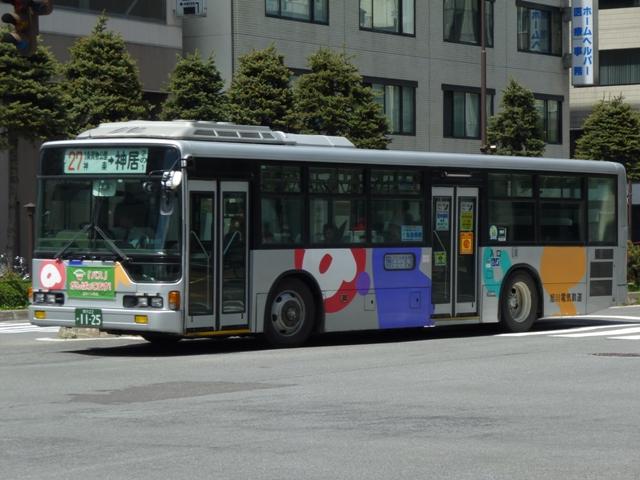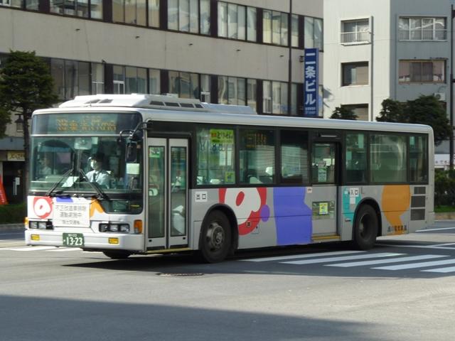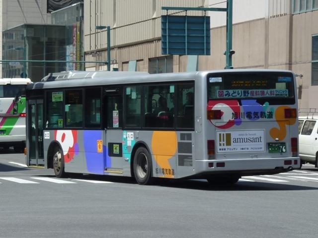 5月の下旬に北海道へ出かけた際に見たバス画像よせ集め。今回は旭川電気軌道の 顔とも言うべきノンステップバス編で、1997年登場の三菱ふそうのノンステップ車から 2001年の日野ブルーリボンシティノンステップバスまで並べていきます。 なお、型式・年式は「ノンステップバスは「いつものバス」旭川電気軌道のノンステップバ ス、導入8年目の現状」『バスラマインターナショナル88号』(2005),ぽると出版を参照 しました。 旭川22か1125.KC-MP747M(97年車)。 97年3月に10台とまとまった台数が登場した三菱ふそうのノーステップバス。他事業者 の導入が1~3台程度だった時期ですから、この導入は英断ともいえました。画像の車 両は10台導入された際の第1号車。 旭川22か1135.KC-MP747M(97年車)。 第1次導入車は側面窓が開くなど、後の増備車と異なる仕様も見られます。 旭川22か1220.KC-MP747M(98年車)。 98年もMPノーステップバスを10台導入。98年車から側面窓が固定化されます。 共栄営業所の車両は側面行先表示位置を側面窓内に変更し、窓下部の表示窓は埋め られています。 旭川22か1224.KC-MP747M(98年車)。 こちらは春光営業所の車両。側面行先表示位置の変更はありません。 旭川22か1323.KC-MP747M(99年車)。 99年車から中扉が引戸仕様となります。 99年は画像のMPノーステップバス9台の他に、UDのAT車のUAノンステップ1台を導 入しています。 旭川200か76.KC-MP747M(00年車)。 00年車はMPのみ10台導入。 旭川200か162.KL-HR1JNEE(01年車)。 01年は日野のノンステップバスを導入。まずはHR10.5mサイズで、バスラマによれば 狭隘道路への乗り入れを企図して導入したとのこと。3台在籍。 旭川200か164.KL-HU2PPEE(01年車)。 HRと同時期に2台登場したブルーリボンシティノンステップバス。HRは収容力に問題が あり、ATには手を焼くということで、日野車の大型ノンステップ車は2010年7月現在、こ の5台のみという状況です。 PR