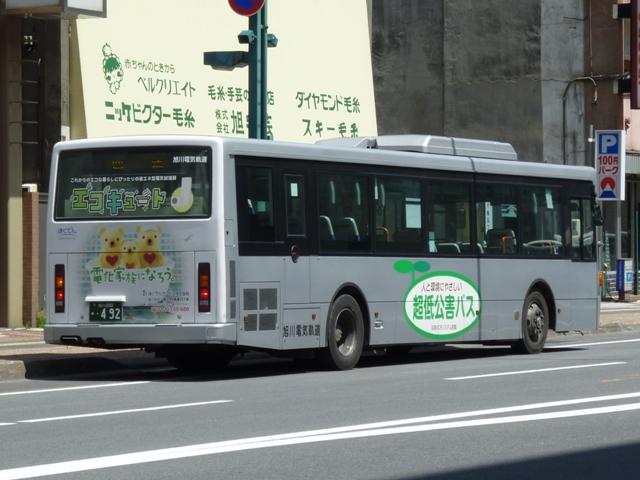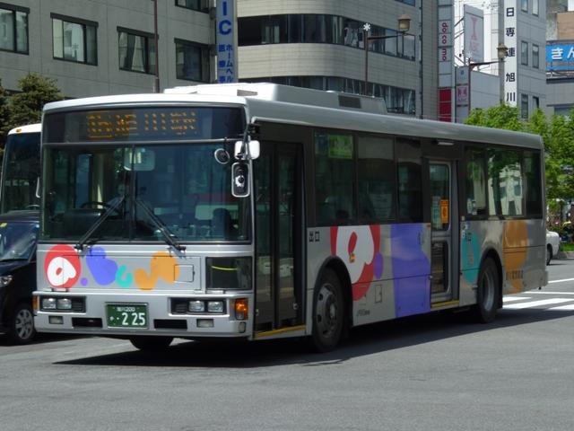 5月の下旬に北海道へ出かけた際に見たバス画像よせ集め。今回は2002年以降、旭 川電気軌道に登場したノンステップバスを並べていきます。 なお、型式・年式は「ノンステップバスは「いつものバス」旭川電気軌道のノンステップバ ス、導入8年目の現状」『バスラマインターナショナル88号』(2005),ぽると出版、及び バスラマ各号掲載の「ノンステップバス採用状況」を参照しました。 旭川200か224.KL-MP37JM(02年車)。 02年は三菱ふそうとUDを導入。まずは三菱ふそうのMP、これまでと同じM尺車です。 旭川200か225.KL-UA452PAN改(02年車)。 UDはP尺と長尺ノンステップ車を導入。 旭川200か231.KL-MP37JM(02年車)。 旭川200か232.KL-UA452PAN改(02年車)。 三菱ふそう車・UD車とも登録番号が分かれて導入していますが、これは当時春光営業所 を「あさでん」として分離していたため。旭川200か220~225があさでん、旭川200か2 29~233が旭川電気軌道として導入。 旭川200か314.KL-MP37JM(03年車)。 2003年はあさでんに導入した三菱ふそうとUD各1台。これまでノンステップバスを毎年 5台か10台導入していただけに少なさが目立ちます。 旭川200か387.KL-MP37JM(04年車)。 04年の3月導入車。旭川電気軌道に登場したのはMP3台。 旭川200か391.KL-UA452PAN改(04年車)。 あさでんにはUD2台。西工ボディが旭川電気軌道に初登場しました。 旭川200か436.KL-MP37JM(04年車)。 これまで新車導入は3月に行われていましたが、04年は12月にもMPを5台導入。この 年以降新車導入はマチマチになります。 旭川200か435.KL-MP37JM(04年車)。 登録番号が前後しますが、リヤ側はこんな感じです。 旭川200か492.ADG-RA273PAN(06年車)。 06年に2台登場した尿素RA、リヤ側のみで失礼します。 塗装はアーバスではなく、「超低公害バス」と尿素車をアピールしています。 旭川200か601.PKG-RA274PAN(07年車)。 07年は排ガス記号が変わった関係で型式が若干変化しましたが、引き続き尿素RAを4 台導入。08年はポンチョを導入しているようですが、見ることは出来ず。 旭川200か721.PKG-RA274PAN(09年車)。 旭川200か724.PKG-RA274PAN(09年車)。 09年登場のRAはアーバス塗装で登場。今のところ道北バスは日野のハイブリッド車、 旭川電気軌道は尿素車と分かれていますが、2010年はどうなるのでしょうか。1つ目 KVとなるのかATのAPとなるのか。 PR