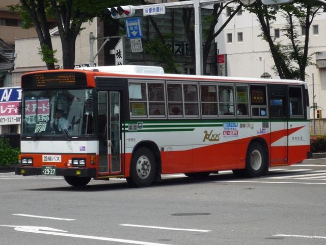 拙ブログでたまに更新する群馬県内で見たバスシリーズ。2010年に前橋駅前で見た バス画像のよせ集めその2です。その2では東武鉄道や群馬バス、上信電鉄、上毛電 鉄といった既存事業者の撤退路線を引き継いだ事業者の車両を並べていきます。 <日本中央バス> 社番:M-1071.KC-MP747K(99年車)※1。 羽田空港・成田空港への高速バスや「シルクライナー」など個性的な高速バスを展開して いる日本中央バス。今回は2009年に見た編で並べていなかった車両から2台。 まずは99年に導入した三菱ふそうのノンステップ車。自社発注のノンステップ車をようやく 記録出来ました。 群馬22い535.U-RB1WEAA(94年車)※1。 参考文献のバスラマによれば、渋川タウンバスとして活躍していたRB。 現在は奇抜な塗装に塗り替えられ、どんな用途で活躍しているのでしょうか。 <関越交通> 群馬22あ2927.KC-HT3KMCA(95年車)※2。 群馬県内の東武鉄道直営路線を最も多く肩代わりした関越交通。当時本社があった水上 地区から肩代わりを開始し、沼田・渋川・前橋と担当路線エリアを南に広げていきました。 現在は中之条地区の路線移管先となった吾妻観光と統合し、群馬県内最大規模の乗合 バス事業者となっています。 まずは95年に関越交通でまとまった台数を導入した日野HT。路線環境に合わせて高出力 エンジン車を選択。 群馬22あ2979.KC-LV380N(96年車)※2。 いすゞLVはキュービックで導入。吾妻自動車でU規制車からキュービックを導入しており、 これにならったものと推測。年式によって仕様差があり、後扉が引戸となっているタイプ。 群馬22あ3081.KC-LV380N(97年車)※2。 97年車は後扉折戸仕様。 群馬22あ3196.KC-HT3KMCA(98年車)※2。 日野HTは扉でなく、ブラックサッシ仕様に変更。 群馬200か726. リヤ側からの画像しかありませんが、水色1色の新型ポンチョ。なんでこの色になったの か分からず。 群馬200あ304. 前橋市のコミュニティバスである「マイバス」専用車両。関越交通は北循環線と南循環線を 担当。2002年の路線開設時に登場したクセニッツは色々とアレだったこともあり、現在は ポンチョの短尺車に代替されています。 <永井運輸> 群馬22あ2663.U-RH1WFBA(93年車)※3。 東武鉄道や群馬バスの廃止代替路線を運行する永井バスこと永井運輸。 車両は使用路線によってマイクロから大型車までサイズがマチマチ。まずは中扉が後輪 寄りに設置された日野RH。廃止代替バスに参入した際に導入した車両です。 群馬22あ3290.KC-RM211GAN改(99年車)※3。 永井運輸初導入であり、かつ群馬県内初登場の中型ノンステップバス。UDで西工ボディ のRM。 群馬200か454.PB-HR7JHAE(04年車)※3。 以後のノンステップバスはHRの9mサイズをメインに導入。 群馬200か597.PK-HR7JPAE(06年車)※3。 参考文献のバスマガによれば、堅調な運営で乗客数も増加傾向にあるとか。このためHR は10.5mサイズも登場。 群馬22い536.KC-RX4JFAA(98年車)※3。 RXの乗合車も在籍。 群馬200あ301. 永井運輸は「マイバス」の西循環線を担当。車両は関越交通同様、ポンチョが担当してい ますが、この日運行していたのは三菱ふそうのローザ。予備車ということですが新車を導 入しており、永井運輸の力を感じます。 なお、型式・年式は以下の文献を参照しました。 ※1)「日本中央グループ 在籍車両一覧」『バスラマインターナショナル57号』(1999), ぽると出版 ※2)『BJハンドブックシリーズR54 朝日自動車』(2005),BJエディターズ ※3)「永井運輸 所有車両44台全データ」『バスマガジン21号』(2007),三推社/講談社 PR