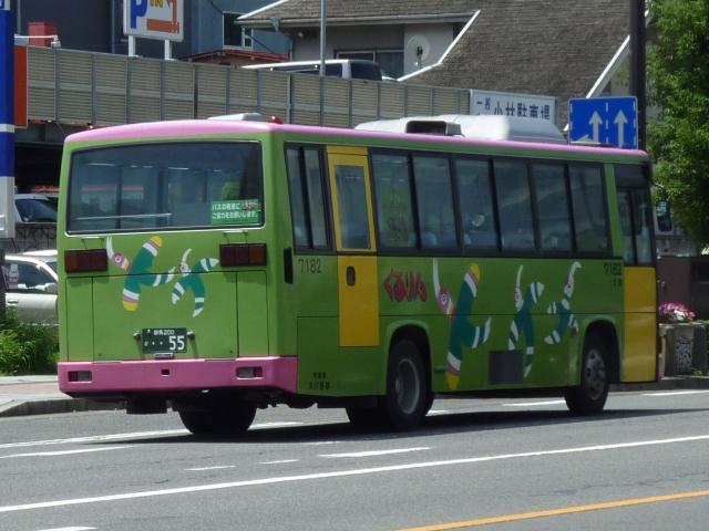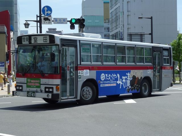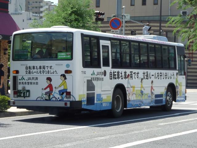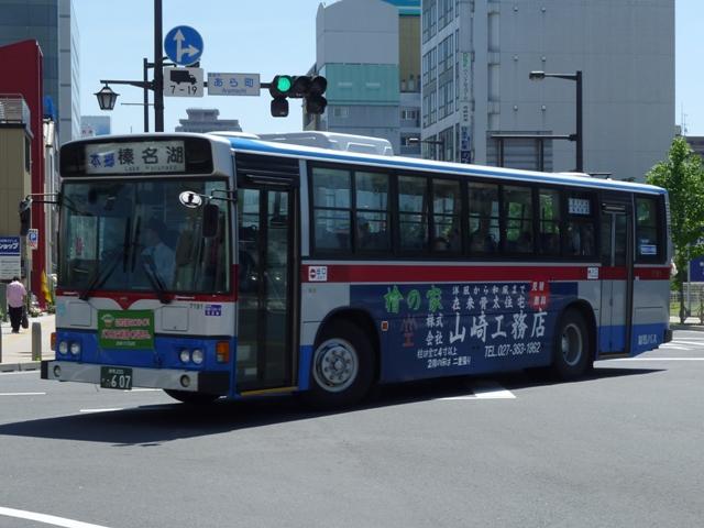拙ブログでも書きましたが、群馬バスでは「初期型日野レインボーRJ」の引退にともない、 2010年8月末までダイヤを固定した限定運行をしています。 社番:27156. せっかく限定運行の英断が下されたのですから、マニアとしては写真を撮るだけでなく、 乗車して多少なりとも群馬バスの増収に貢献せねば、ということで、高崎に行きました。 今では懐かしいと思えるようになったパイプ椅子に揺られ、箕輪から高崎までRJに乗 車しました。限定運行ということで同業の方がいるかと思いきや、車内は地元の方と思 しき方々のみ。車窓から見たところ交差点などで記録している方もいませんでした。記 録する側からすれば、涎掛けがあるから行かないなどの理由もあるかもしれません。 もっともここ数日の体温と同じくらいの気温では仕方が無いことかもしれません。 そんな暑い高崎で熱中症と戦い記録したバス画像のよせ集め、高崎でしっかり時間を かけてバスを記録したのは2008年以来でしょうか。ここ最近高頻度で更新する群馬 県内で見たバス画像よせ集めですが、「高崎で見たバス2010」と題した新シリーズを スタート。まずはRJ限定運行に敬意を表し、群馬バスで活躍する日野の乗合車を並べ ていきます。なお、高崎市内循環バスぐるりん用途のリエッセ・ポンチョは除いておりま すので、あらかじめご了承願います。 社番:27156. まずは限定運行中の初期型RJ。この日は公表されている限定運行の前に高崎経済大 学への路線にも入っていました。 限定運行は箕輪営業所と高崎駅を結ぶ路線ですが、高崎駅から回送で箕輪に戻る運用 もあり、実際乗りに行って分かったのは、箕輪で時間をつぶす辛抱など「乗る」という固い 決意が必要なダイヤということです。 以下、社番順に見ることが出来た車両を並べていきます。 社番:7171. モデルチェンジした中型車。 今回見た群馬バスの車両全てにバス協会涎掛けを装着していました。以前は正面にも広 告板を設置していましたが、現在は撤去したようで枠の跡が残ります。 社番:7174. 角目仕様の大型車。このあたりの自社発注車まで前後扉仕様でした。 社番:7182. 前中扉で全引違側面窓・黒サッシ仕様のRJは遠州鉄道からの移籍車。高崎市内循環 バスぐるりんの18・19番倉渕・榛名線で活躍中。 社番:7188. イオンカラーのリエッセ。群馬バスにはポンチョだけでなく、リフト付のリエッセも在籍して いたとは知りませんでした。しかも現在はイオンモール高崎への路線専属とは・・・。 社番:7191. 東武バスからのHT移籍車。イオンカラーで専属車として活躍していましたが、先ほどのリ エッセやエルガミオやらに置き換えられ、現在は下部に青色の入った新塗装に塗り替えら れています。 社番:7192. もう1台はラッピング広告車となっていました。ライトベゼルも塗ってしまうのが群馬バス 塗り替え車のポイント。 2008年のよせ集めでは、安中市役所への路線に新ポンチョが運行していましたが、前 橋からのイオンモール高崎線に転属するなどで今回は見られず。安中市役所線には新 塗装のエルガミオノンステップ車で運行していました。 群馬200か144. 高崎市内循環バスぐるりんをメインに活躍するHR7m。ただし塗装デザインはぐるりんとも 群馬バスとも異なる白ベースとなっています。 PR