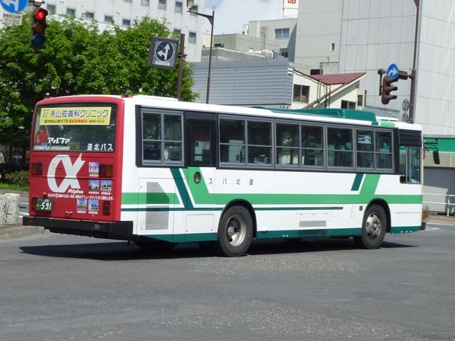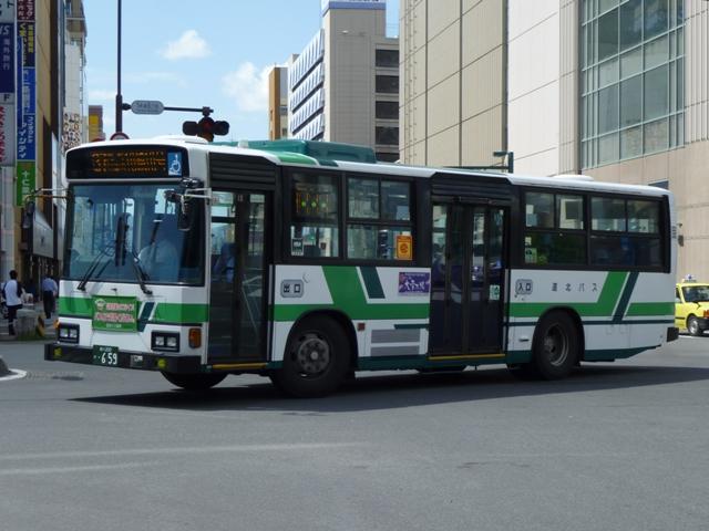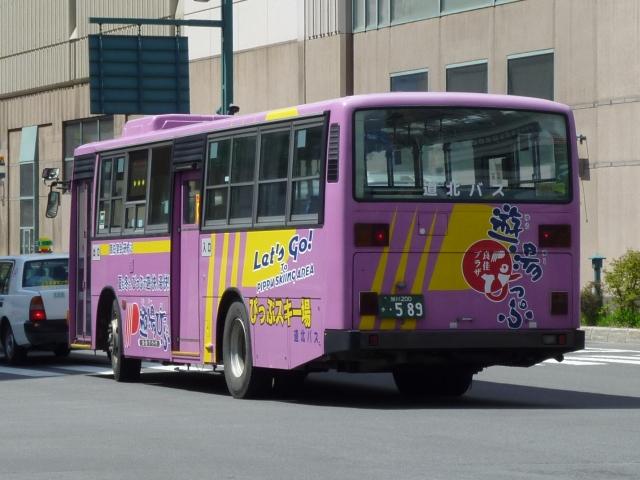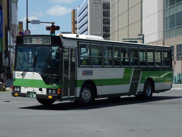 5月の下旬に北海道へ出かけた際に見たバス画像よせ集め。 様々な事業者からの移籍車を導入している道北バス。今回のその3では、横浜市交通局 移籍車の中でも珍しい仕様の車両や新たに登場した見たままそのままカラーのものなど を並べていきます。 旭川200か589. サッシ窓仕様の日野ワンステップ車は屋根上機器から分かるように川崎市交通局からの 移籍車。まずは「遊湯ぴっぷ」ラッピングとなっている車両。 旭川200か590. 旭川200か591. 登録番号が異なりますが、一般塗装の車両を前後から並べておきます。 旭川200か594. コンスタントに導入される京浜急行バスからの日野ワンステップ移籍車。 旭川200か612. 見たままそのままの遠州鉄道からの移籍車。立派なシートを生かして名寄など長距離 路線を中心に活躍中。画像は短いL尺の車両ですが、ほかにM尺も在籍しています。 旭川200か658. 一時期横浜市交通局で採用された銀サッシメトロ窓仕様も在籍。横浜市交通局では機 械式AT車を大量導入していた時期の仕様ですが、試験的に導入したツーステップの都 市低床車がMT車だったことから再就職を果たしたという事例。他にUDの都市低床車が 茨城交通で活躍しています。 旭川200か659. 最近道内で増殖中の横浜市交通局エアサスワンステップ移籍車もいち早く導入してい ます。都市低床車とあわせて導入した模様。 旭川200か672. 道北バスでは久しぶりとなる神奈中古。まさかの中型移籍車導入となりました。 白石騒動の余波でJR北海道が確保していた車両を分けてもらったとか。 旭川200か679. 引き続き導入される京浜急行バスから日野ワンステ移籍車。KC規制車となりました。 旭川200か698. 道北バスのカラーのようで実は全く異なるデザインのMPトップドア車。埼玉県内の学校 送迎で使われていた車両のため、元自家用と言われていますが実は隣接する事業者が 所有していた青ナンバーの特定車。道北バスではトップドアの為、路線限定で活躍してい ます。 PR