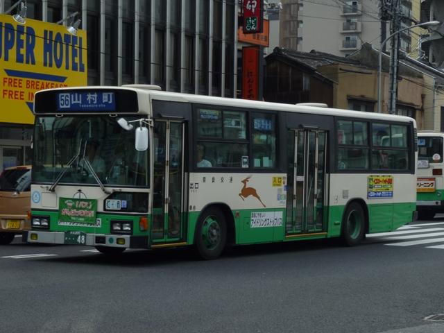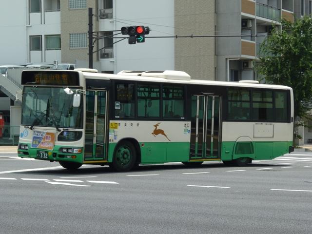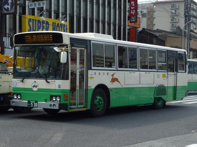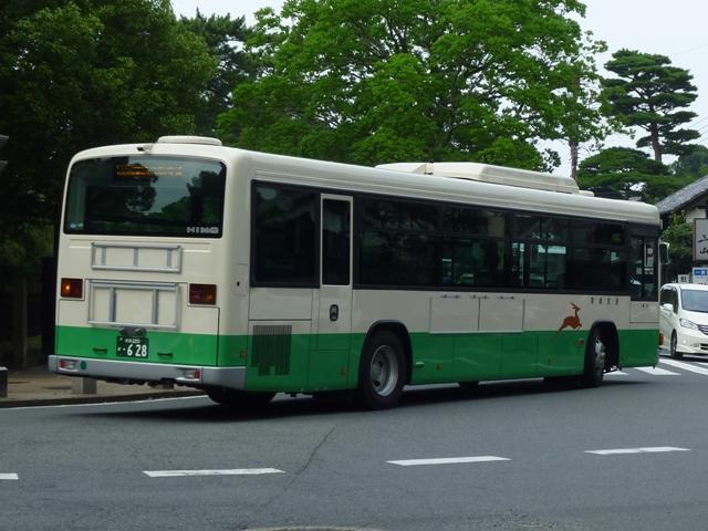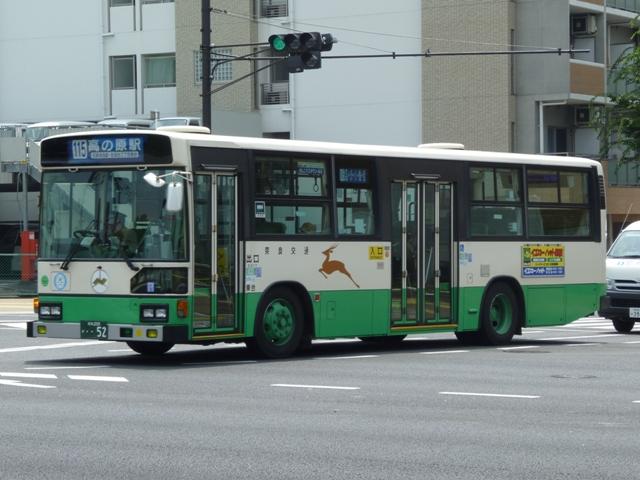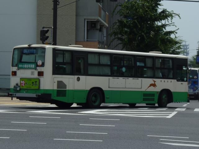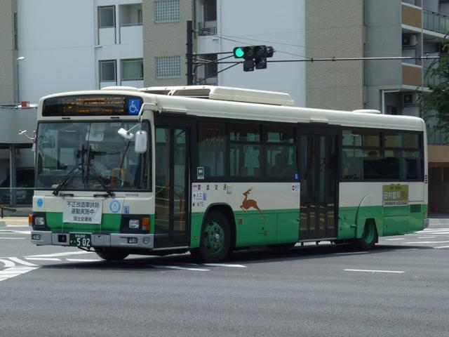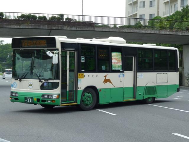 奈良で見たバス画像よせ集め、内容は奈良交通のバス画像よせ集めです。 今回のその6では奈良駅周辺中心に見た奈良200かナンバーの日野大型乗合車画像 を並べていきます。 奈良200か23.KC-HU2MPCA(98年車)※1。 大型車(短尺除く)は市内線3扉・多区間前後扉だった奈良交通ですが、ワンステップ車 の導入により、中扉4枚折戸に変更。この頃導入された車両は後輪の巻き込み防止カバ ーを省略していました。 奈良200か48.KC-HU2MMCA(99年車)※1。 やや短いM尺の車両も導入。短いといっても長尺に比べてという意。 奈良200か52.KC-HU2MMCA(99年車)※1。 せっかくなのでもう1台。 奈良200か332.KL-HU2PREA(03年度車)※2。 KL規制車となりブルーリボンシティにモデルチェンジ。まずは中扉4枚折戸の長尺車。 ちなみにリヤの巻き込み防止カバーは既に復活しています。 奈良200か341.KL-HU2PLEA(03年度車)※2。 M尺よりさらに短いL尺も導入。こちらは中扉引戸仕様となっています。なお、この画像の み高の原駅前で記録。 奈良200か502.PKG-KV234Q2改(07年度車)※2。 見かけた車両は一気に年式が新しくなって1つ目長尺車となりました。中扉4枚折戸と基 本的な仕様は変わらず。 奈良200か530. 銀サッシの長尺車で、再登録車?と思いきや、リヤナンバープレートがバンパー中央に 位置していることから近鉄バスからの移籍車と分かります。 奈良交通は奈良観光バス、近鉄バスとともに近鉄グループの持株会社である「けいはん なバスホールディングス」傘下事業者ということでグループ間移籍車という括りになるので しょう。りんどう号→バンビーナ導入あたりから奈良交通の車両導入も変化してきた様子。 奈良200か568. 近鉄バスからは大型車と中型車が移籍しており、奈良市内には大型長尺車と画像のL 尺車が活躍しています。ちなみに近鉄バスでは銀サッシの車両はツーステップ車導入末 期の仕様となります。 奈良200か581. せっかくなので長尺車をもう1枚。近鉄バスといえば機械式ATを一時期積極的に導入 していましたが、これらは防長・明光あたりに流れていった模様。奈良交通に在籍する 近鉄移籍車はMT車です。 奈良200か628.PKG-KV234Q2(09年度車)※2。 2009・2010年にかけては近鉄バスに移籍車となるような路線廃車が無いこともあるの か、怒涛の新車導入が続いています。リヤからの画像だけで失礼。 型式等は下記を参照しました。 ※1)『BJニューハンドブックス No.38 奈良交通』(2002)BJエディターズ ※2) 「奈良交通グループ 新車一覧」『バスラマインターナショナル各号』,ぽると出版 PR
