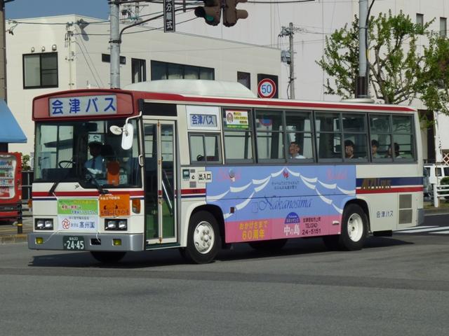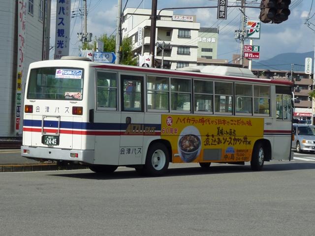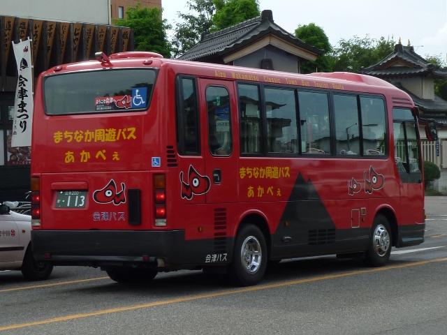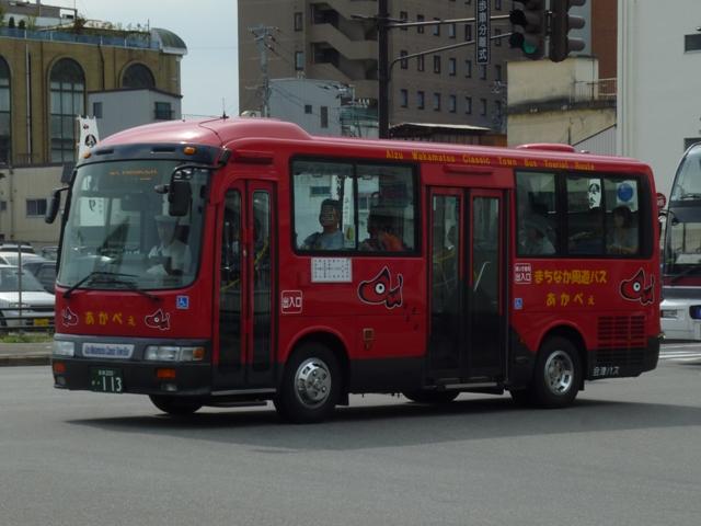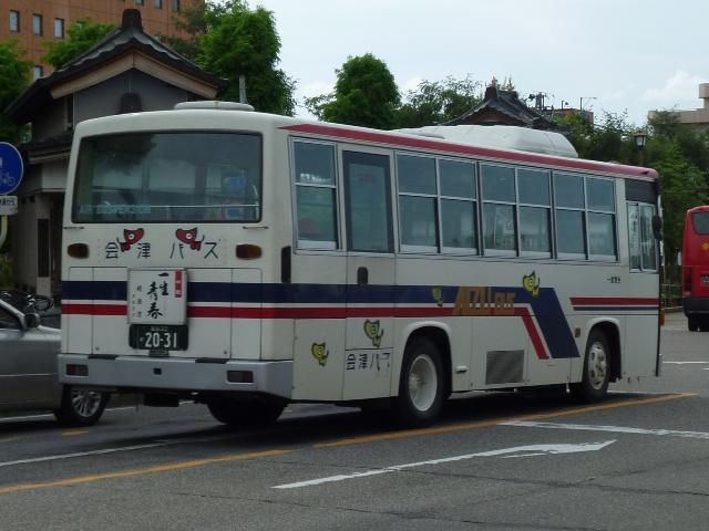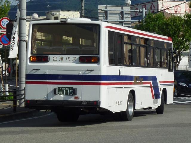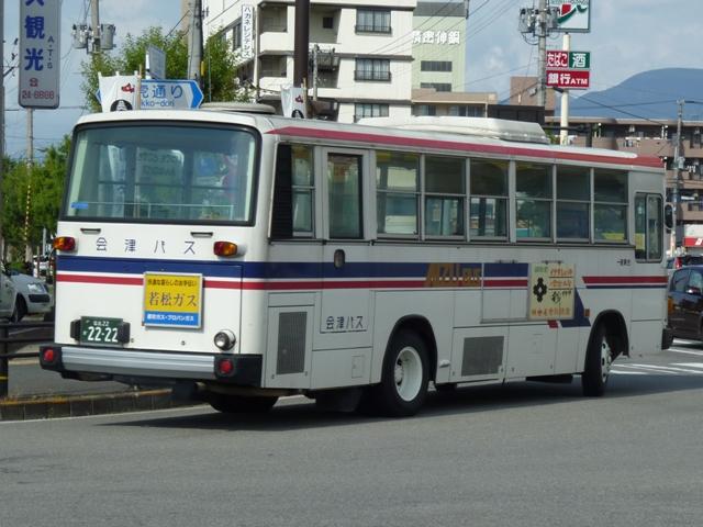 福島バスまつりを見物後、「ひまわりくん」代走がRNでないかと期待して会津若松へ向 かいました。今回は結局空振りに終わった会津若松で見た会津バスこと会津乗合自動 車のバス画像よせ集めです。 タイトルに「+(プラス)」とあるものの、並べた画像は5月に見たものとほぼ同じものとな っています。 会津200か113. 5月に訪問した後に会津バスで登場した車両といえばこのRX。まちなか周遊バス「あか べぇ」専用車のクセニッツを代替したリフト付きのRX。クセニッツは元々不具合続出で前 所有先のコミュニティバスでも早々に代替されており、春~秋間の季節運行でしかなか った会津でも数年しか活躍しませんでした。 福島22か2031. 行楽シーズンということもあり、「あけべぇ」にも続行便が出ていました。「前乗り」プレート を掲げた古参の日野RR短尺車に赤べこキャラクターを貼り付けて運行。 福島22き2030. 緑色のクセニッツは福島バスまつりで展示中ということで、病院循環バス「ひまわりくん」 は一般車で代走。メインで運行していたのは後部に回転式広告板を取り付けた日野RR 短尺車。RNが運行しているのかも?という淡い期待はかないませんでした。 福島22か2030. この日は「ひまわりくん」運行終了後、金堀線の運用にも入っていました。 福島22か2222. 2030が食休の間は画像の富士6EボディなLRで運行していました。 福島22か2445. 「大内宿こぶしライン号」は5月と同じ車両で運行していました。一般乗合車で運行してい るものと考えて良い模様。 RNは今回も運用に入っていませんでした。念のため若松営業所へ足を延ばしてみると 会津200か88. マニア対策?なのか営業所入口の駐車枠にとまっていました。期せずして路上から記録 することが出来ました。バスロケアンテナや座席モケットにケイビーバス(関東バス)の名 残があります。方向幕は「会津バス」ですが、フロントガラスに行先札らしきものがぶら下 がっています。 拡大したところ「オリンパス通勤バス」とのこと。朝の特定運用でしょうか? 通勤バスが7mで事足りてしまうのは残念ですが、むしろマイカーではなく、まだバス通勤 している方がいるということを喜ぶべきなのでしょう。 <おまけ> 会津200か115. 新しい登録番号の貸切車も見かけましたが・・・、移籍車なのか再登録車なのか。 今では古めかしく見えるテールライトのLR。 PR