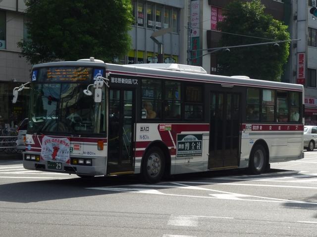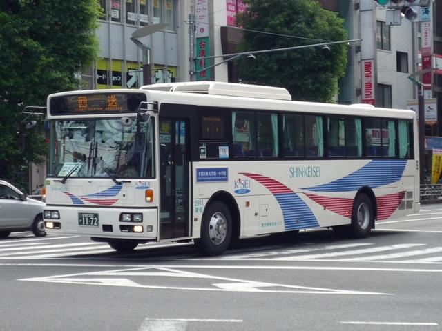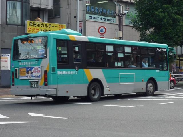 準大手私鉄に位置づけられている新京成電鉄では、2003年にバス事業を分社しました。 単にバス事業を分社しただけではなく、鎌ヶ谷営業所を船橋新京成バス、松戸営業所を 松戸新京成バス、そして鎌ヶ谷営業所の分車庫であった習志野車庫を習志野新京成バ スと営業拠点毎に3分社しました。分社から7年経った現在、各社それぞれ制定した独自 塗装の車両が増え、新京成電鉄直営時代のマルーン帯の車両は代替により数を減らし ている状況です。 船橋新京成バスについてはこのブログで何度も画像を並べていますが、総武線で2駅隣 の津田沼駅を中心に路線展開している習志野新京成バスとなると、途端に足が遠のいて いました。 社番:2702. 船橋に比べると足が遠のく理由として、津田沼駅周辺でここぞという記録地点が見つから ないこと。他所なら好撮影ポイントになるはずの駅前バス乗り場へ入る右折地点も、駐車 禁止ポールがネックでご覧の通り。撮影に邪魔なポールですが、それでなくても津田沼駅 周辺は違法駐車の無法地帯なので、このポールが無ければここにも駐車されてしまうの で仕方がありません。 社番:2701. 県道長沼船橋線との交差点は、なんとか「シチサン写真」を記録出来るのですが・・・。 歩行者が多く、タイミングが難しいことこの上なし。津田沼駅前の難易度が小生に高すぎ て、なかなか出かける気になりませんでした。いつのまにか小生もシチサン写真マニア になってしまいましたか。 今回はそんな津田沼駅周辺で記録した習志野新京成バスの車両画像を久々に並べて いきます。 <習志野色> 社番:2710. 習志野新京成バスはエメラルドグリーン主体のカラー。習志野カラーの車両は画像の シビリアンテールなRM中型ノンステップの車が中心です。 社番:2751. 社番2750番台の車両はwikiによると近年改番されたものとか。リヤ画像しかありませ んが、登録番号では社番2702の続番にあたる車両です。KK規制車のRM。 社番:2752. 2752はPB規制車。 社番:2013. 登場時は話題となったAP。習志野色で導入した大部分のAPは船橋新京成バスへ転籍 し、第3次導入以降の車両が在籍しています。 <参考> 社番:1024. 船橋新京成バスで活躍する習志野色のAP。撮影ハードルが高い津田沼駅前に比べると、 右左折別レーンで歩車分離という船橋駅前に足が向くのは必然かと。 <新京成電鉄色> 社番:N-789n. 新京成電鉄直営時代の塗装で活躍する大型ワンステップ車。社番の末尾に小さくNとある のは、習志野車庫配属車両という意味。前述の習志野色大型車転籍で、船橋新京成バス から代わりに新京成電鉄塗装のワンステップ車が転籍しています。これらは末尾にN表記 がありません。 社番:N-792n. 社番:N-801n. どういうわけだか、新京成電鉄塗装車には「チーバ君」の涎掛け装着率高し。 いずれこの涎掛けも「時代」をあらわすものになると推測。 社番:N-M42. 新京成電鉄塗装の中型車も在籍しています。サッシ窓のJPという珍しい車両も在籍して いますが、当然のように記録できず。走っていても歩行者・車被りで記録できない可能性 もあるのが難点。 なお、今回のタイトル「習志野 新 京 成 バ ス」は新京成電鉄塗装に無理矢理押し込 めた表記をモチーフとしています。 <特定車> 社番:2911. 学校送迎特定メインで活躍する京成グループカラーの西工ボディ大型車。LEDの行先表 示を装備しています。バンパーがボディ同色のため、白さ感アップ。 PR