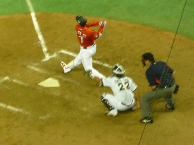 ごくごくたまに更新するプロ野球ネタ。 第二次金田ロッテ時代からの千葉ロッテマリーンズファンということで、観戦に行きました というエントリです。 日韓クラブチャンピオンシップは2008年まで行われていたアジアシリーズの代替的な もので、韓国はSKワイバーンズ、日本は千葉ロッテマリーンズが対戦しました。昨年は 長崎で開催されましたが、今年はアジアシリーズ時代と同じく東京ドームでの開催となり ました。東京ドームの3階席で試合を観たのは日本ハムが札幌移転前以来かも。 もっとも、アジアシリーズの台韓戦をバックネットで観ることを楽しんでいましたから、ロ ッテが出場しようがしまいが観戦に行ったと思いますが。 画像は2007年のアジアシリーズで統一ライオンズとSKワイバーンズ戦の始球式を記 録したもの。台湾チームは毎回応援団を引き連れ太鼓叩いてどんちゃかずんちゃかやっ ていましたが、2007年のSK側もマスコットキャラクターや応援団やチアのお姉さんを 呼んで都市対抗野球チックな騒がしい応援合戦を繰り広げていました。 翌年のアジアシリーズも台湾・韓国ともに同一チームの出場となりましたが、SK側の応 援団は姿を消しました。 SKは今年も応援団が無く、攻撃中は静かなもの。あっという間に終わるSKの攻撃は、 モチベーションの差も影響していたのではという印象。もっともロッテ側もマスコットはク ールとズーちゃんだけと、コスト削減感はありましたが。 SKワイバーンズ 0 - 3 千葉ロッテマリーンズ SKは主力選手が欠場ということもあり、ロッテ先発唐川から放った2安打のみの完封負け。 ロッテ側も走者は出すも点が入らないロッテ野球と、試合内容は正直微妙なものでした。 ロッテの西岡や小林宏の最終出場が話題になっていましたが、SK側にも現役最後の試 合だった選手がいたとか。 TV東京の録画中継によれば3番に入っていた「金宰炫」がこの試合を最後に引退。 事前にもう少し情報を集めておけばきちんと記録したんですが。ちょっと残念。 来年は台湾でアジアシリーズ開催を目指すと言うことで日本開催は無さそうですが、 是非再開してほしいものです。 PR