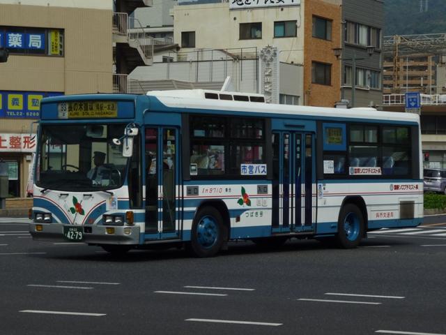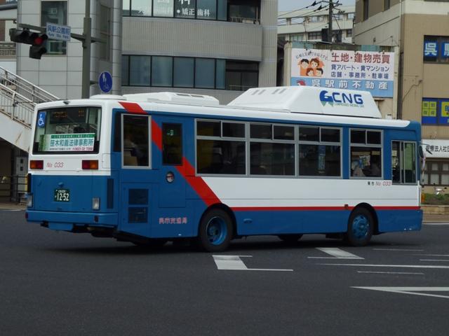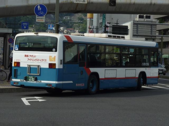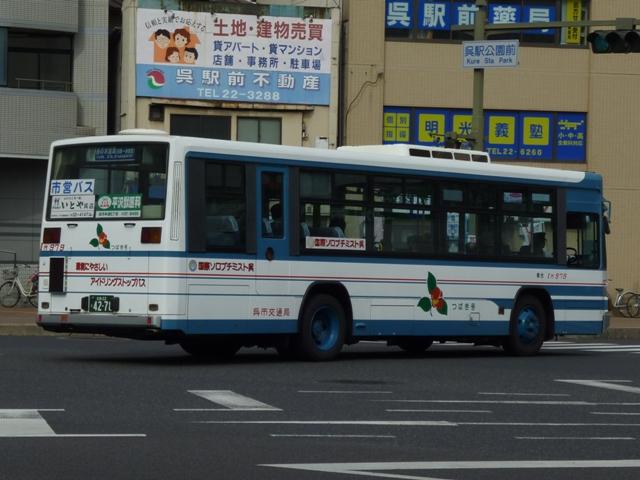 いまさらの話で申し訳ありませんが、広島県の呉市は交通局で運行している市営バス の全路線・系統を1事業者に民間移譲することを発表しました。運行事業者は今年11 月に行われる公募とプレゼンテーション等で年内に決定するとのこと。しかも運行開始 が2012年4月1日よりということで、随分タイトなスケジュールです。ちなみに応募資格 を簡単にまとめると、広島県内に本社(主たる事務所)があり、乗合バスを164両以上 保有する一般乗合旅客自動車運送事業者というもの。中国新聞のインターネット配信 記事(リンク省略)によれば、広島電鉄と中国JRバスの2社が応募したとの事。このブ ログで画像をちんたら並べている間に運行事業者が決定していることでしょう。 ということで、先日あわてて広島の呉へ出かけた際に見たバス画像のよせ集め。今回の その1ではUDといすゞ車を並べていきます。昨年並べた画像とほぼ同じ車両という内容 となることをあらかじめお断りしておきます。 なお、型式・年式は呉市交通局の路線移譲あたりHP上に掲載された「公募資料4 車両 一覧」を参照しました。まさかこのような形で在籍車両の型式・年式が分かるようになると は思いもよらず。 昨年も書きましたが呉市交通局の局番についておさらいしておきます。 メーカーを表すアルファベット(F:三菱ふそう・H:日野・I:いすゞ・N:UD)に登録年(西暦 末尾2桁)+通番。乗合車はWBが4.3m~4.8mは「m」、4.2m以下は「s」、7mサ イズが「c」を追加します。また97年導入車までワンマン車をあらわす「o 」の表記があり ます。 <UD車> 局番:N064.KL-UA452MAN改(06年車)。 呉市交通局のUD車は少数派。そのほとんどは02年から導入を開始したCNGノンステ ップバスです。画像はラッピング車となっている06年車。 局番:Ns033.KK-RM252GAN改(03年車)。 CNGノンステップは中型車も在籍していますが、実はこれ09年に導入した移籍車。 元は近畿地方の学校送迎車として活躍していた車両だとか。側面LED行先表示機の取 り付けに無理があるのも、元自家用と考えれば仕方が無いもの。それにしても、よくまぁ こんな車両を見つけてきて導入したものです。CNGノンステップ中型移籍車は同時期に 三菱ふそうのMKも導入しています。ちなみに移籍車の局番は初度登録年を基準とし、 在籍車両の続番号となっています。 <いすゞ車> 局番:Im979.KC-LV280L(97年車)。 局番:Im9710.KC-LV280L(97年車)。 呉市の市花から「つばき号」の名称で2台活躍するいすゞキュービックLV。車体のあち こちに書かれた「国際ソロプチミスト呉」からの寄金を活用して導入したワンステップ車 です。前回は涎掛けで見えなかった正面の「ツバキ」をようやく見ることが出来ました。 局番:Is995.KC-LR233F(99年車)。 昭和営業所管内の循環路線で活躍するLR短尺車。呉市交通局では1台のみの在籍。 局番:I 031.KL-LV280N1改(03年車)。 エルガのノンステップ車。先に導入した三菱ふそうMPノンステップ車と異なり、標準尺車 を導入。 局番:I 043.KL-LV280N1改(04年車)。 翌年もエルガノンステップ車を導入。この塗装はスロープ付きなどバリアフリー法適合車 に採用されています。99年に導入した三菱ふそうMPノンステップバスから採用されたた 塗装で、広島電鉄や広島バスで導入されたMPノーステップバスの塗装デザインをさらに 簡略した感。 局番:I 073.PKG-LV234N2(07年車)。 PKG規制車も導入、屋根上冷房機器形状がサーモキングの現行タイプとなっています。 局番:I 082.PDG-LV234N2改(08年車)。 08年頃から車両導入は移籍車中心となり、新車導入はCNGのノンステップ車のみ。 エルガのCNGノンステップ車。 局番:I 092.PDG-LV234N2改(09年車)。 09年もエルガCNGノンステップ車を導入。まさかこの導入が呉市交通局最後の新車と なるとは想像できませんでした。 PR