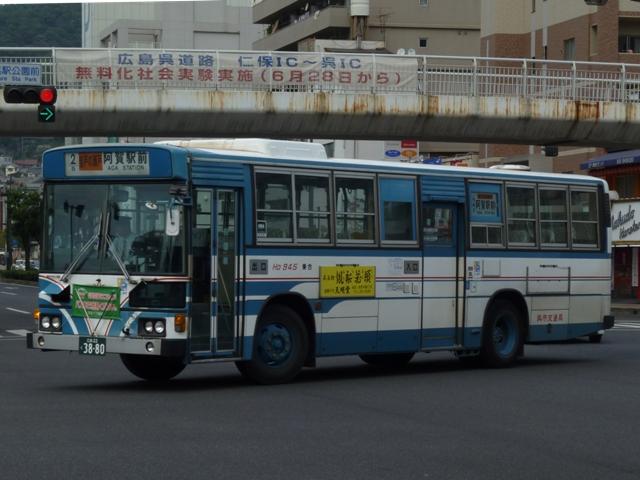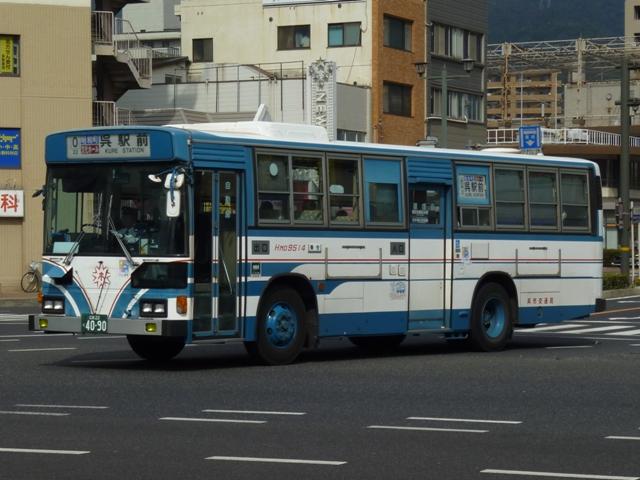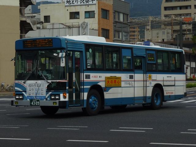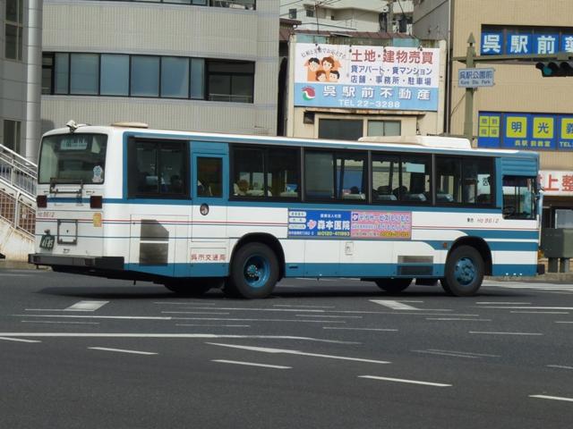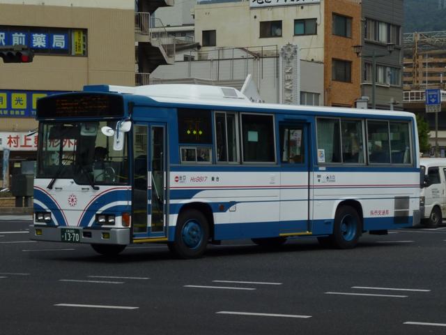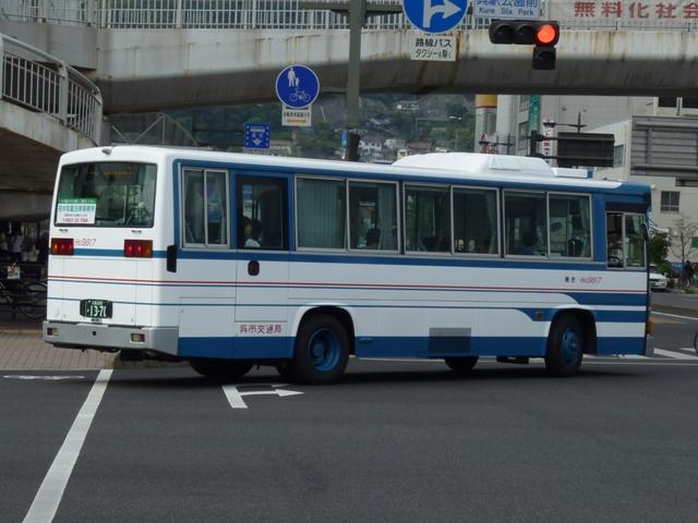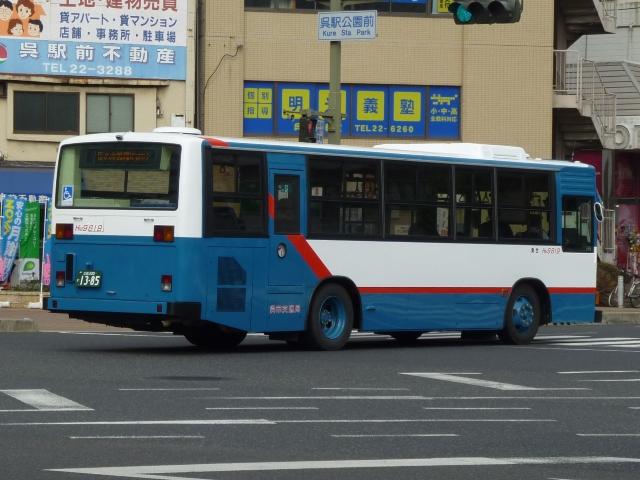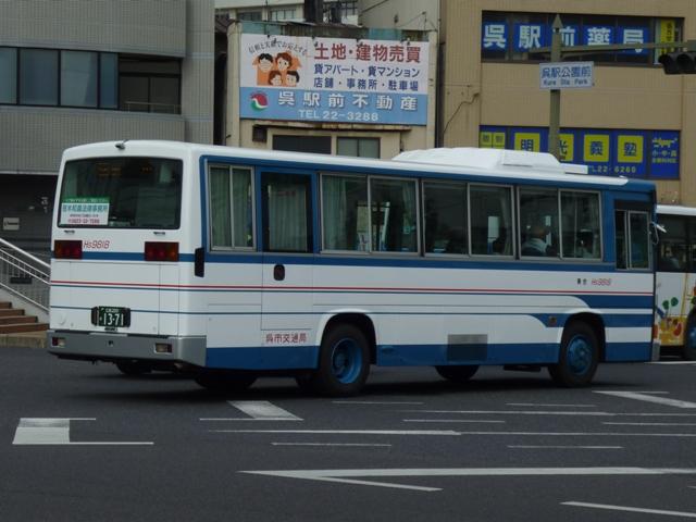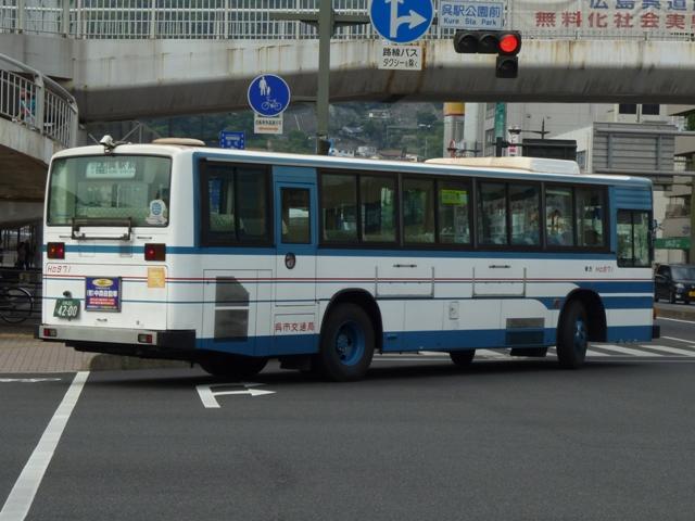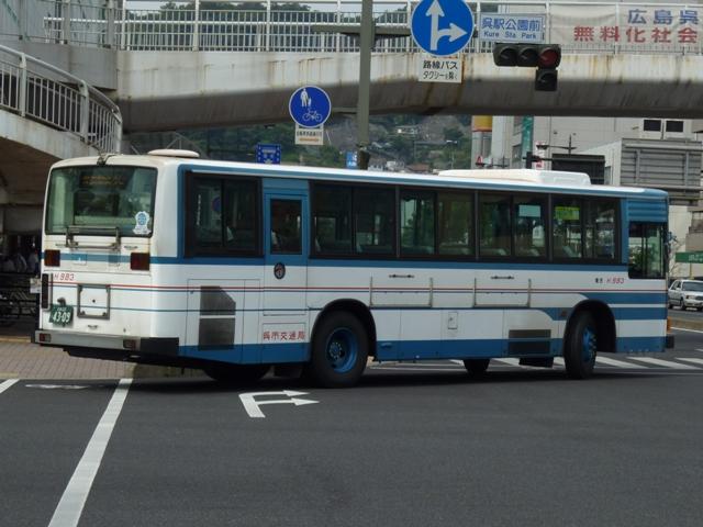 呉市交通局が市営バスを民間移譲すると知り、10月下旬にあわてて出かけた際に記録 したバス画像のよせ集め。今回は日野の98年車まで(観光型除く)を並べていきます。 なお、型式・年式は呉市交通局の路線移譲あたりHP上に掲載された「公募資料4 車両 一覧」を参照しました。 局番:Ho 9220.U-HU2MMAA(92年車)。 日野車は参考資料によると90・91年車も在籍しているようですが、記録出来たのは昨 年同様92年車から。涎掛けの「変わります!より安全に より親切に」は平成22年度の 呉市交通局スローガン。変わりますとは民間移譲のことだったというオチになるとは。 局番:Ho 945.U-HU2MMAA(94年車)。 呉市交通局の日野車の特徴といえばフロント部分の視野拡大窓。先に登場したエアロス ターKの仕様が気に入ったのか、92年車以降このスタイルで導入しています。 局番:Hmo 9514.KC-HU2MLCA(95年車)。 ヘッドライトが角型になったKC規制車。標準尺車がメインの呉市交通局ですが、路線環 境にあわせて画像のL尺車や大型短尺車も導入しています。 局番:Ho 9612.KC-HU2MMCA(96年車)。 側面窓が全引仕様となった96年車。リヤ側画像のみで失礼。 局番:Ho 971.KC-HU2MMCA(97年車)。 正面側を記録出来たのは97年車。外観的には96年車とほぼ同じです。 局番:H983.KC-HU2MMCA(98年車)。 行先表示がLEDとなっている車両。営業所統合の際にあわせて改造した模様。 局番:Hs9817.KC-RR1JJAA(98年車)。 局番:Hs9818.KC-RR1JJAA(98年車)。 2010年に2台登場した名古屋市交通局からの中型移籍車。3扉仕様や廃車売却方法 などから、これまで国内移籍事例が少なかった名古屋市交通局の車両。今年春先に廃 車となった前中扉車は日本各地の新天地で活躍する事例も多いようで、今後しばらくは 有力な移籍元として名を連ねることになりそうです。 局番:Hm9819.KC-HU2MLCA改(98年車)。 こちらは日本各地で引っ張りだことなっている横浜市交通局のHUワンステップ車で呉 市交通局にも登場しました。ほかにも横浜市交通局からは三菱MPも導入しているよう ですが、こちらは記録出来ませんでした。 PR