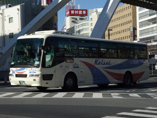 小生のHDDを整理していると、千葉市内で記録したバスの画像がそこそこありました。 2010年に記録した画像の店晒しというほどでもないのですが、唐突に「千葉で見たバス 2010」を更新していきます。今回は記録出来た京成バスの車両画像よせ集めです。 京成電鉄は1990年代より直営のバス事業を営業所・車庫毎に分社化を進め、千葉駅を 発着する一部の路線が「ちばフラワーバス」「ちばシティバス」として分社しました。最後ま で電鉄直営で残った営業所・車庫が京成バスとなり、その後もグループ会社への路線移 管などを行っています。京成バスは電鉄直営時代からの4桁社番をもち、頭の数字・アル ファベットは営業所を表します。千葉駅発着の路線は、頭数字「5」の千葉営業所が担当 しています。 社番:5189.KL-LV280L1(03年車)※1。 千葉営業所の在籍車両はいすゞ車中心となっています。かつての主力だったキュービッ クやら富士7Eは自動車NOx・PM法の関係で代替が進み、現在はエルガばかりとなって います。まずはKL規制のワンステップ車。 社番:5194.KL-LV280L1(03年車)※1。 こちらはノンステップ車。京成バスではありふれた車両にも見えますが、KL規制のL尺車 に限定すると前中扉間ノンステップ仕様のtype-Aは少数派。もっともフルフラット仕様の type-Bもけして多くはないのですが。どちらも千葉営業所に在籍していますが、type-B ノンステップ車は見られず。 社番:5206.PJ-LV234L1(05年車)※1。 PJ規制車からデンソーエアコンに変更。ワンステップ車。 社番:5209.PJ-LV234L1(06年車)※1。 せっかくなのでリヤ側も記録出来たワンステップ車両も並べておきます。 路線車両のほとんどが京成バスで近年力を入れている東京駅発着の近距離高速バスを PRした涎掛けを装着していました。 社番:5220.PJ-LV234L1(06年車)※1。 ヨドバシカメラがある所、このラッピングバスありといった感。ワンステップ車。 社番:5223.PJ-LV234L1(06年車)※1。 こちらはノンステップ車。このあたりから出入口表示がピクトグラムとなっています。 社番:5235.PKG-LV234L2(08年車)※2。 PKG規制車のノンステップ車も在籍しています。仕様的には変わらず。 社番:5405. BRCハイブリッドノンステップ車が千葉営業所にも登場。ハイブリッド車も活躍の場を広 げています。 <高速車> 社番:H080.KL-LV781R2(02年車)。 千葉駅からは空港路線など高速路線も発着していますが、記録出来たのは日東交通・ 館山日東交通と共同運行している「南総里見号」のみ。京成バスの担当営業所は社番 頭アルファベット「H」の貸切センター。まずは現行グループ共通カラーに塗り替えられた 直結冷房のガーラ。側面中央の「K▽sei」グループロゴマークは現行グループ共通カラ ー初期車の特徴。 社番:H626.KL-MS86MP(05年車)。 現在の側面中央は各社それぞれ制定しているロゴマークなどとなっています。京成バ スはKaNaCカラー時代同様、京成電鉄と共通の「Keisei 」ロゴ。画像は直結冷房の MS。 なお、型式・年式は下記を参照しました。 1)『BJハンドブックシリーズR64 京成バス』(2008),BJエディターズ 2)「ノンステップバスディテールファイル いすゞ・エルガ編」『バスマガジン40号』(2010), 講談社ビーシー/ 講談社 PR