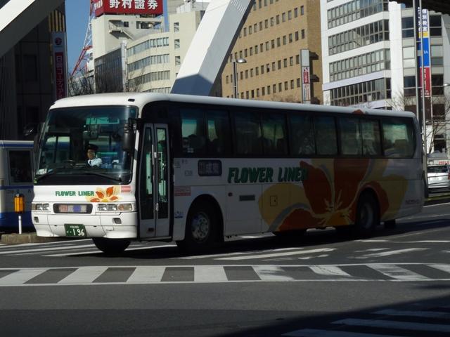 2010年に記録した画像の店晒し的シリーズの「千葉で見たバス2010」。今回は記録 出来たちばフラワーバスの車両画像よせ集めです。 1990年代から営業所・車庫毎の地域分社を開始した京成電鉄。分社第1号となったの が成東営業所の路線を引き継いだ「ちばフラワーバス」です。ちなみに同社公式HPによ れば、冷熱サービスという凡そバスに関係無さそうな会社を社名変更して運行を開始して いることが分かります。現在は中野操車場も同社へ移管され、本社所在の山武市と千葉 市の2箇所に車庫を持ちます。社番は京成時代と同様、頭数字「6」の4桁数字となってい ます。 社番:6464.U-HT2MMAA(95年車)※1。 ちばフラワーバスの一般乗合車は日野中心。本社営業所の山武市が自動車NOx・PM 法対策地域外ということで、古参格のU規制車も2010年12月段階で活躍していました。 社番:6431.KC-HT2MMCA(96年車)※1。 ヘッドライトが角目になったKC規制車。 社番:6432.KC-HT2MMCA(99年車)※1。 当時の京成電鉄本体は既にワンステップ車中心の導入となっていましたが、ちばフラワー バスは引き続きツーステップ車。 社番:6467.KC-HU2MMCA(97年車)※1。 ちなみに京成電鉄本体で当時導入していたワンステップ車がこちら。グループ間移籍で ちばフラワーバスに在籍しているとは知りませんでした。なお、年式は冷房ユニットが屋 根上にあることからの推測です。成田ナンバーということで、本社営業所の所属。 社番:6437.KL-HU2PMEA(03年車)※1。 交通バリアフリー法施行以後に導入したBRCワンステップ車。 BRCの販売開始時期と交通バリアフリー法の施行時期に若干ズレがあるため、ちば フラワーバスには一般乗合車では珍しいBRCツーステップ車も在籍している模様。1台 のみということで、当然ながら記録出来るわけも無く。 社番:6440.PJ-KV234L1(06年車)※1。 日野車メインということで、このボディが登場。エルガと判別困難なPJ規制車。 社番:6441.PJ-KV234L1(06年車)※1。 こちらは正面になぜかK▽SEIロゴの無い車両。 社番:6445.PDG-KV234L2(07年車)※1。 1つ目となった車両。型式から分かるように、この車両はAT。ちばフラワーバスでは他の 分離子会社同様、自社発注の一般乗合車はATをメインで導入しています。 社番:6447. ちなみに1つ目KVなど新車は千葉ナンバーということで、中野の配属となっています。 U規制車がどれだけ活躍するのか気になるところです。 <高速車> 社番:6318.KC-MS815S(99年車)※1。 ちばフラワーバスは千葉東金道路を経由する高速バスも運行中。成東への「フラワーラ イナー」、東金への「レイクサイドライナー」(九十九里鉄道と共同運行)の2路線が千葉 駅から発着しています。このほか、成東と東京・浜松町を結ぶ「シーサイドライナー」も運 行しています。 千葉駅発着の「フラワーライナー」・「レイクサイドライナー」は短距離ということもあり、廉 価仕様車が中心。まずはかつての主力だったニューエアロバスのスタンダードデッカー。 塗装は参考文献のBJハンドブックによると、「旧成東町の町木キョウチクトウの花を描 いたもの 」とのこと。 社番:6319.PJ-MP35JP(05年車)※1。 貸切車ベースである必要は無いと判断されたようで、路線車シャーシにグレードダウン。 一応フロント1枚ガラスで見栄えのするMP。 社番:6322.PDG-KV234Q2(08年車)※2。 そしてグループ統一カラーで登場したKV。キョウチクトウが側面のワンポイントとなって います。高速バスということで、正面のLED行先表示は小型のものとなっています。この ボディではちょっと物足りなさを感じます。ちなみにこの車両、型式から分かるように一般 乗合車と同様にATです。 なお、型式・年式は下記を参照しました。 1)『BJハンドブックシリーズR64 京成バス』(2008),BJエディターズ 2)『トラベルムック 鉄道ダイヤ情報プレミアム バス新型車両コレクション東京・神奈川・ 千葉・埼玉』(2009),交通新聞社 PR